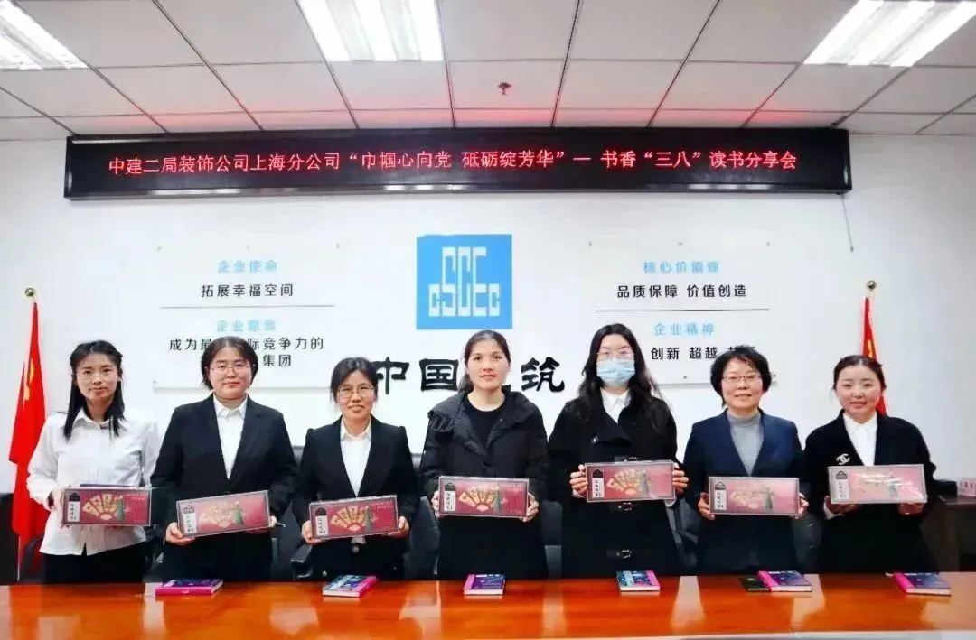 上海分公司开展“巾帼心向党 砥砺绽芳华”系列活动,分公司机关开展书香“三八”读书分享会,龙泉项目组织女员工摘草莓、逛博物馆,五角场万达项目组织开展咕卡手工制作茶话会,上饶阳光城项目开展“我为女性献鲜花”活动,以不同方式向巾帼力量致敬。