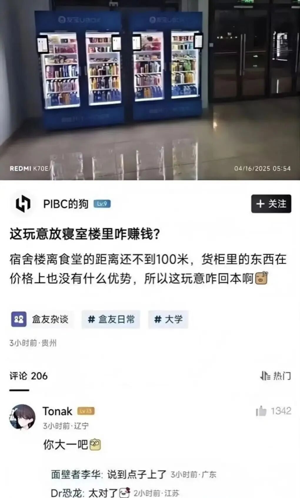 没有学生自己宿舍搞小卖部吗,不过如果要冷藏的那学生宿舍里没法保证。