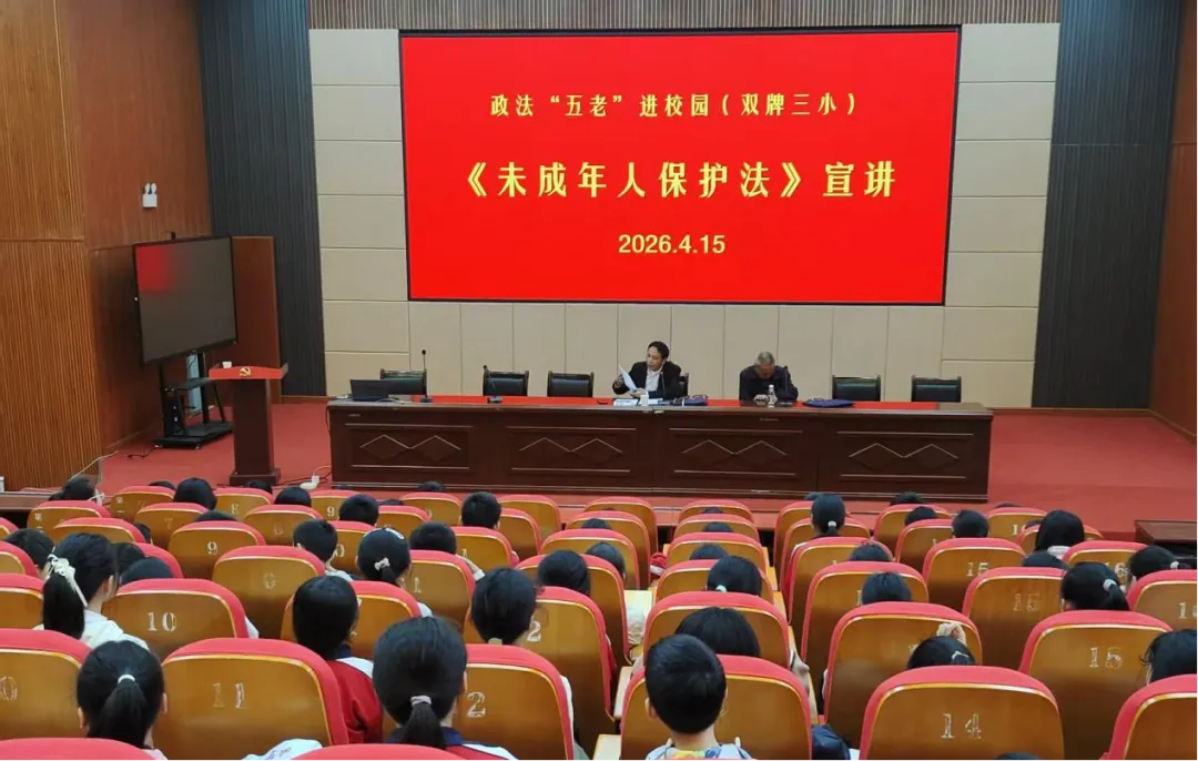 4月15日上午,双牌县第三完全小学特邀政法“五老”宣讲团进校园,开展《未成年人保护法》专题宣讲活动。宣讲团结合政法工作经验和学生生活案例,详细解读“六大保护”核心内容,讲解未成年人合法权益、自我保护方法及校园欺凌、网络沉迷等问题的应对措施,引导学生树立法治观念。此次活动有效提升了学生的法治意识和自我保护能力,是学校推进平安校园建设的重要举措,学校将持续常态化开展法治教育,为学生成长营造法治环境。(杨梅楠 何承东 肖建 康灵)