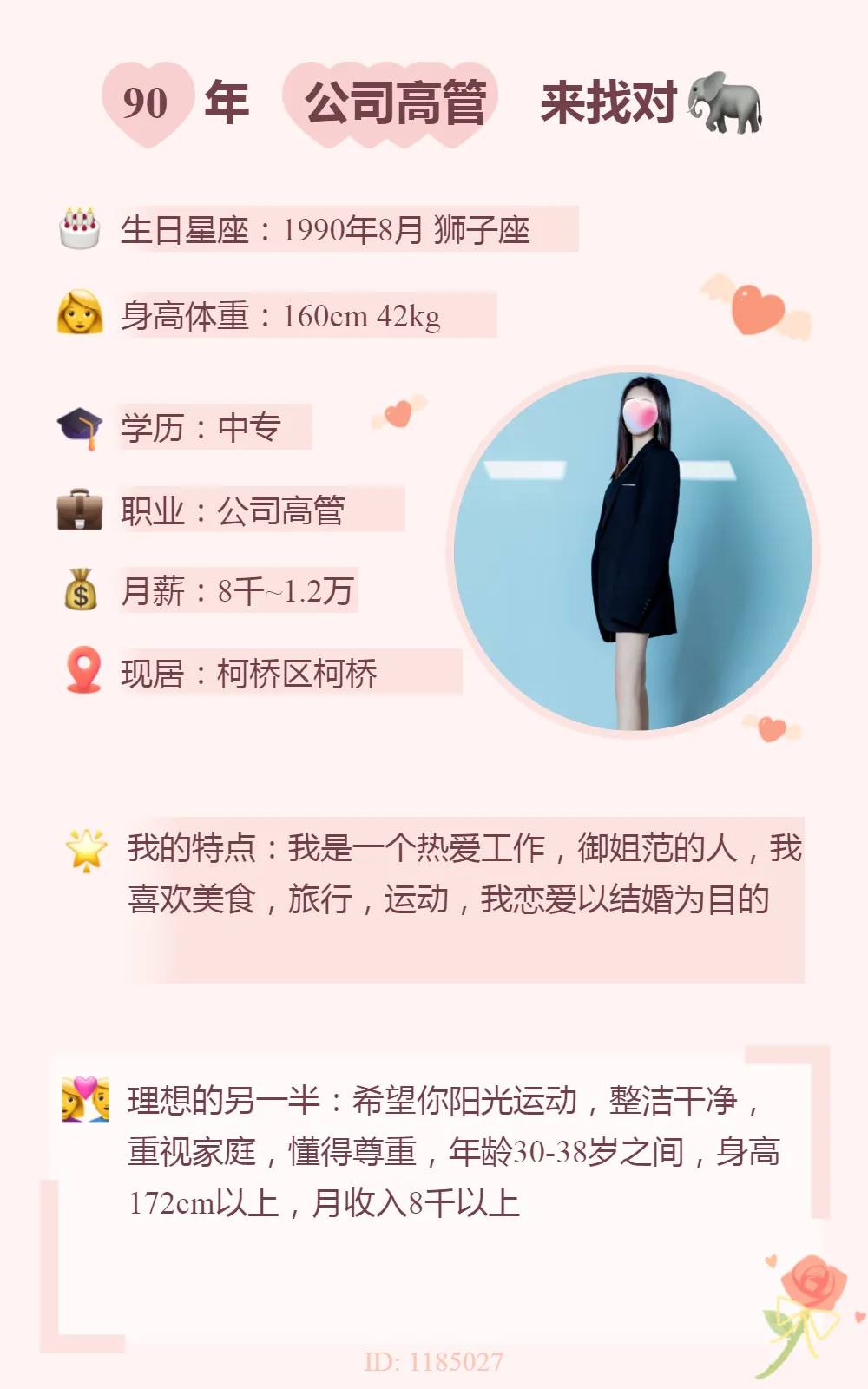 基本情况:90年,未婚,中专学历,现在浙江工作,性格乐观自信,恋爱以结婚为目的