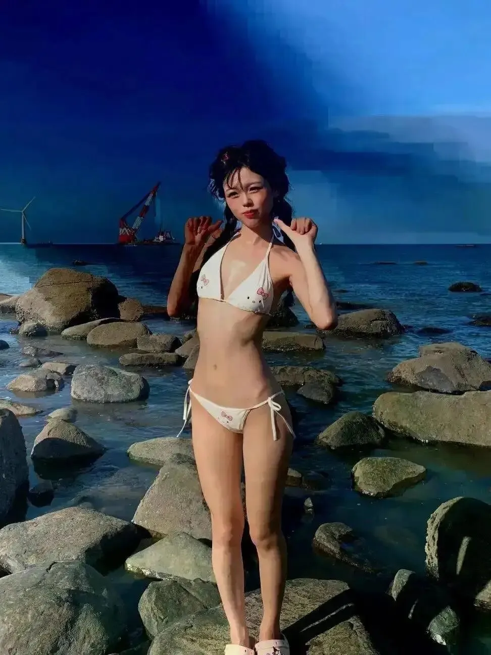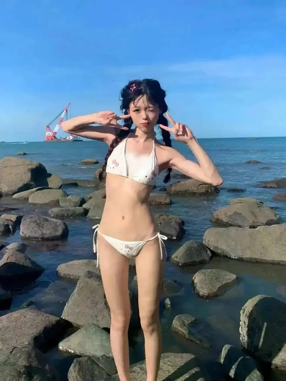 好看的夏日穿搭总拍不出效果,很多时候问题真不在脸,而在姿势太僵、手不知道往哪放。这组照片是在蓝天海边+礁石浅水区拍的,穿的是白色挂脖泳衣,氛围很清爽。下面我按图片顺序,把每一张怎么拍、为什么出片,给你拆开讲清楚。