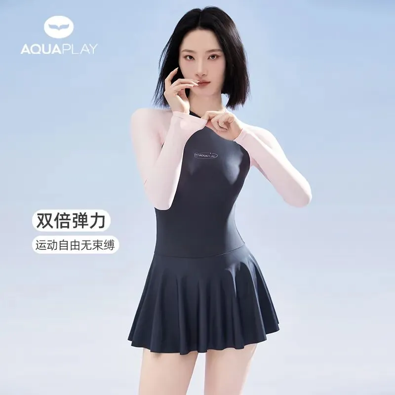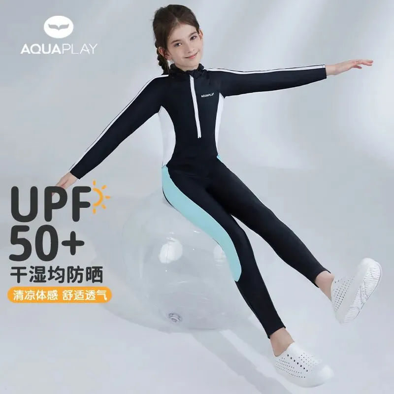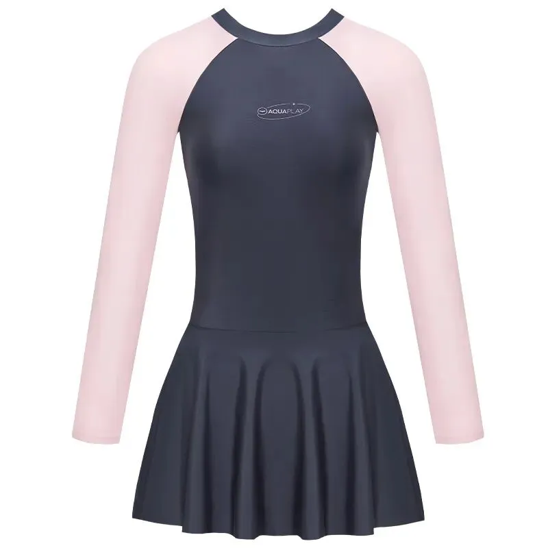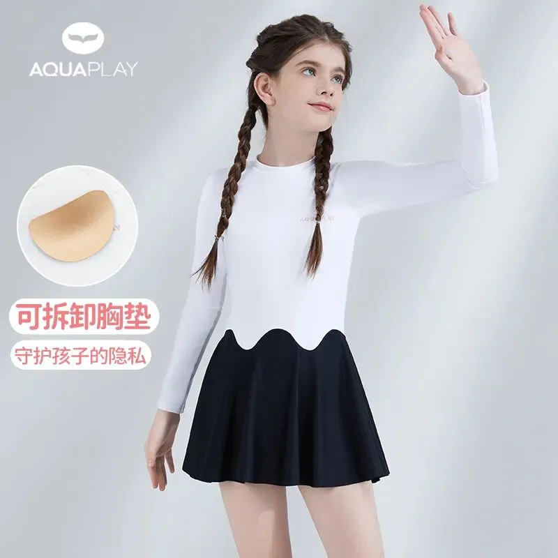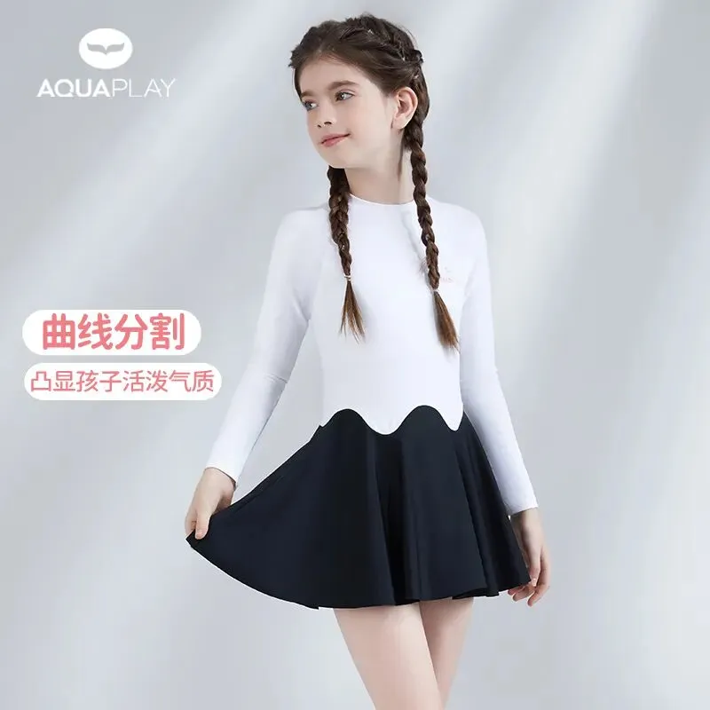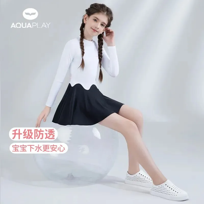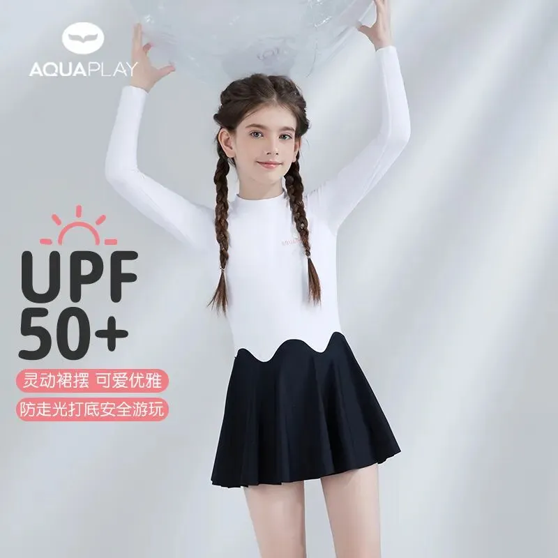 AquaPlay连体泳衣儿童裙式游泳衣中大童可爱防晒速干长袖