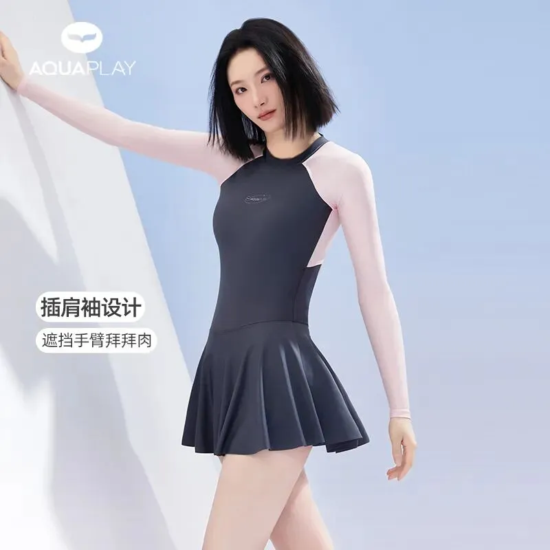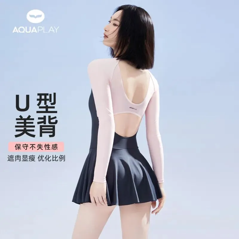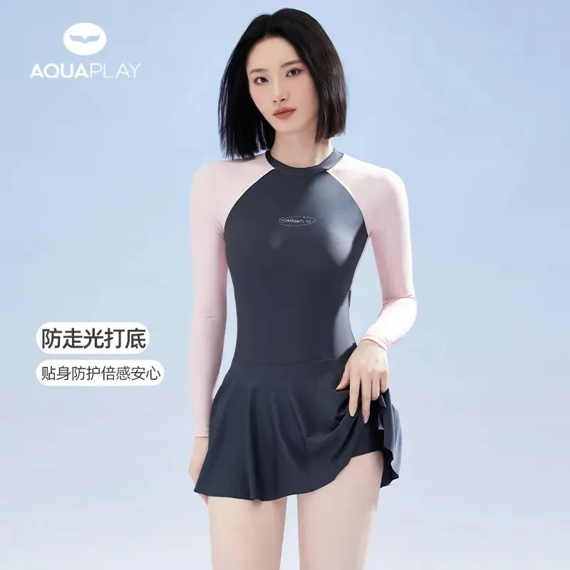 AquaPlay连体泳衣女保守显瘦长袖游泳衣女款潜水服防晒速
