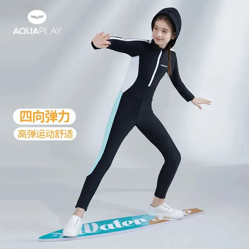 AquaPlay连体泳衣儿童长袖泳装男孩女孩防晒速干新款游泳