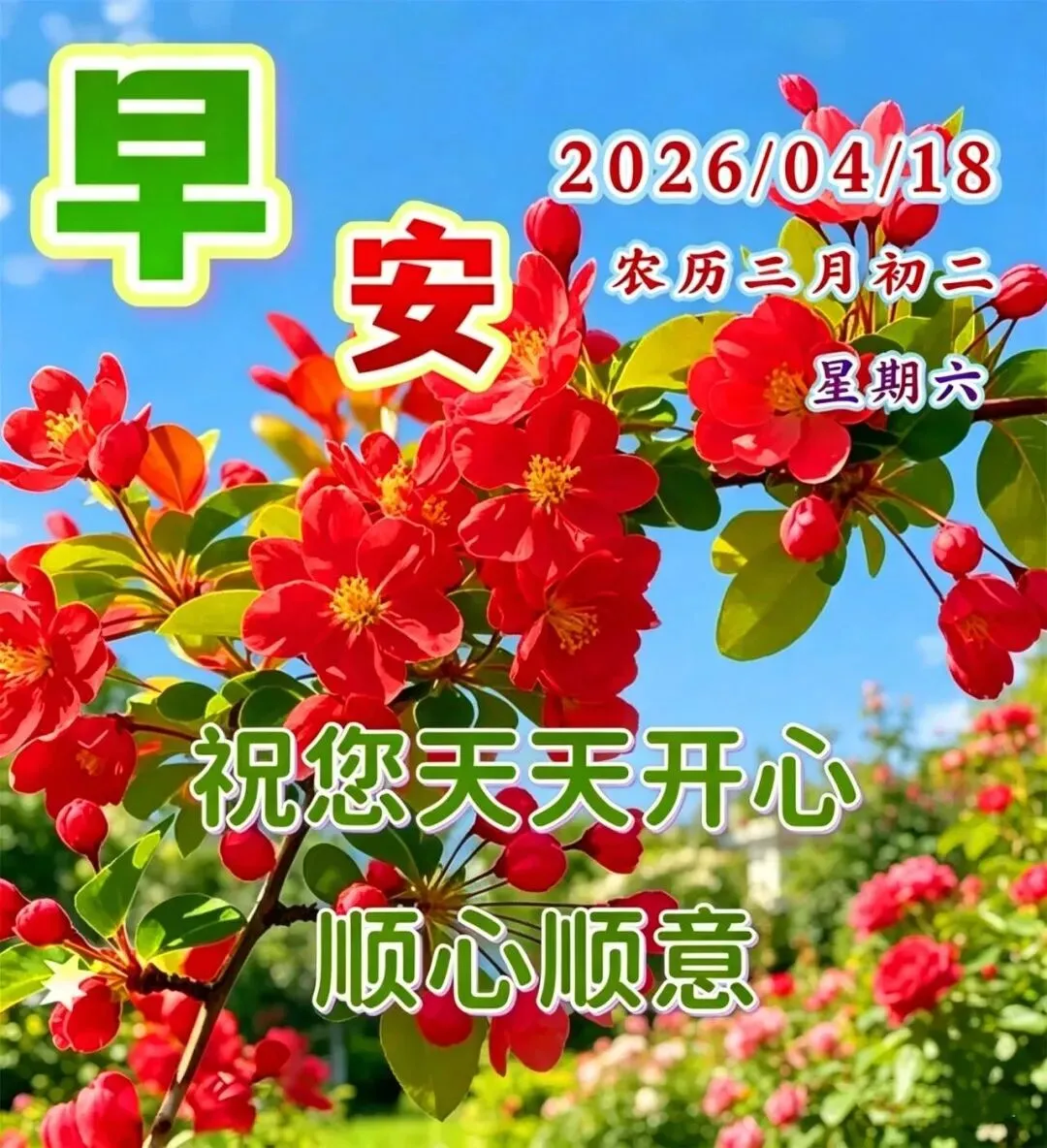当前位置:首页>美女资讯>4月18日周六早安祝福图片:开心快乐每一天,周末愉快!