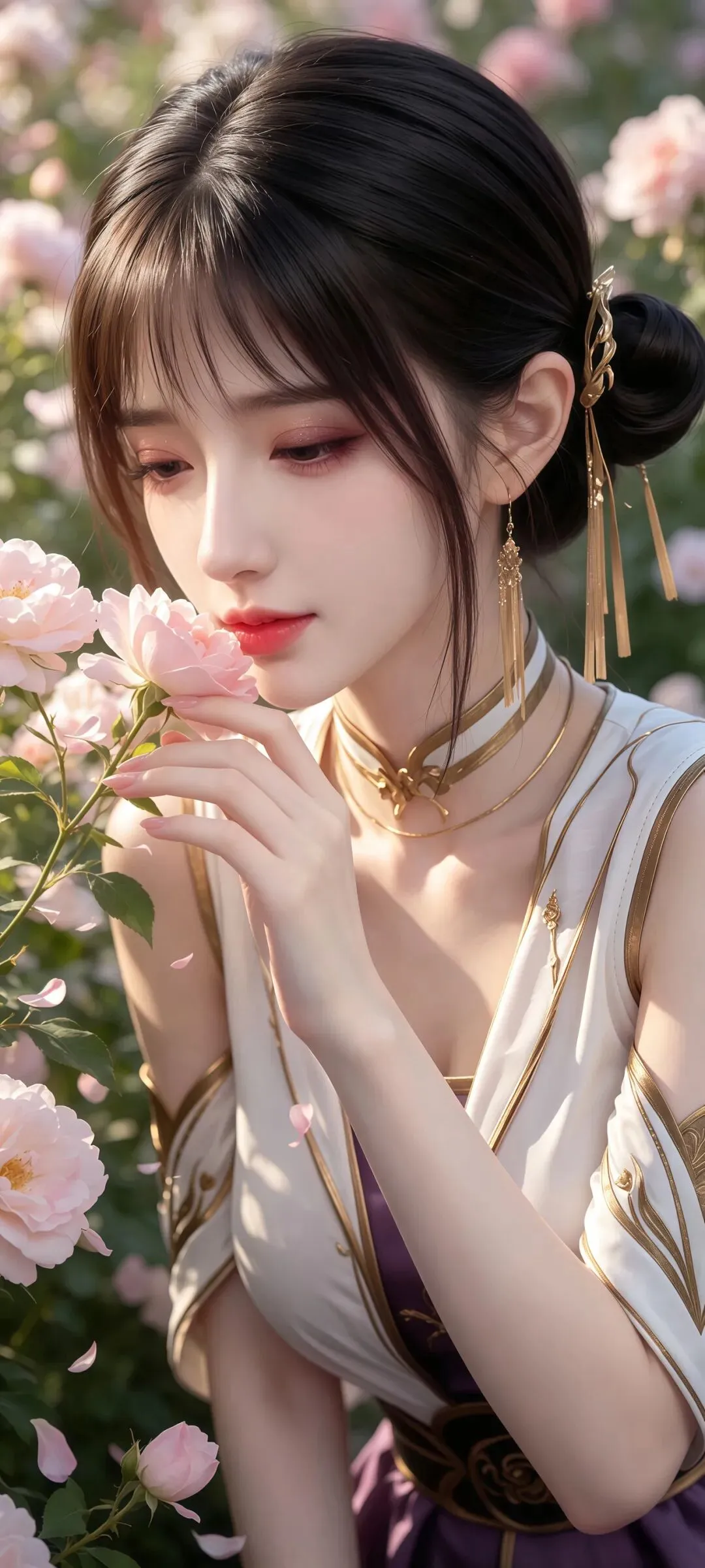 作为手机壁纸,这组丹晨主题作品最难得的,是在极致的美感之外,兼顾了画面的氛围感与实用性,让每一次点亮屏幕,都能收获一场沉浸式的国风美学洗礼。画师深谙国风壁纸的创作精髓,以虚实结合的手法构建画面层次,前景是鲜活灵动的丹晨本人,背景则以写意的云山雾海、水墨竹林做铺陈,朦胧的远景既不会抢夺人物的视觉焦点,又为画面增添了悠远的意境,完美适配手机屏幕的比例,不会出现画面裁切、重点丢失的问题。整体光影以柔和的漫反射为主,没有强烈的明暗对比,暖调的柔光均匀铺洒在画面之上,将丹晨的肌肤质感、服饰纹理都衬得愈发温润,既不会在亮屏时过于刺眼,又能在暗光下保留足够的画面细节。画面里的丹晨始终带着淡然从容的笑意,没有张扬的气场,只有治愈人心的温柔,在快节奏的日常里,每一次抬眼看见屏幕上的她,都能收获一份来自国风美学的松弛与治愈,这份直抵心底的温柔,正是这组壁纸最戳人的魅力所在。