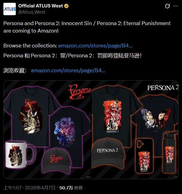 前段时间,作为《女神异闻录》30周年纪念活动的一部分,Atlus官方发推表示,《女神异闻录》、《女神异闻录2:罪》和《女神异闻录2:罚》即将登陆亚马逊。由于公告的措辞略显暧昧,一些玩家一开始还以为这些老作品将迎来现代平台重制或复刻,仔细一看才发现是T恤衫等周边商品。
