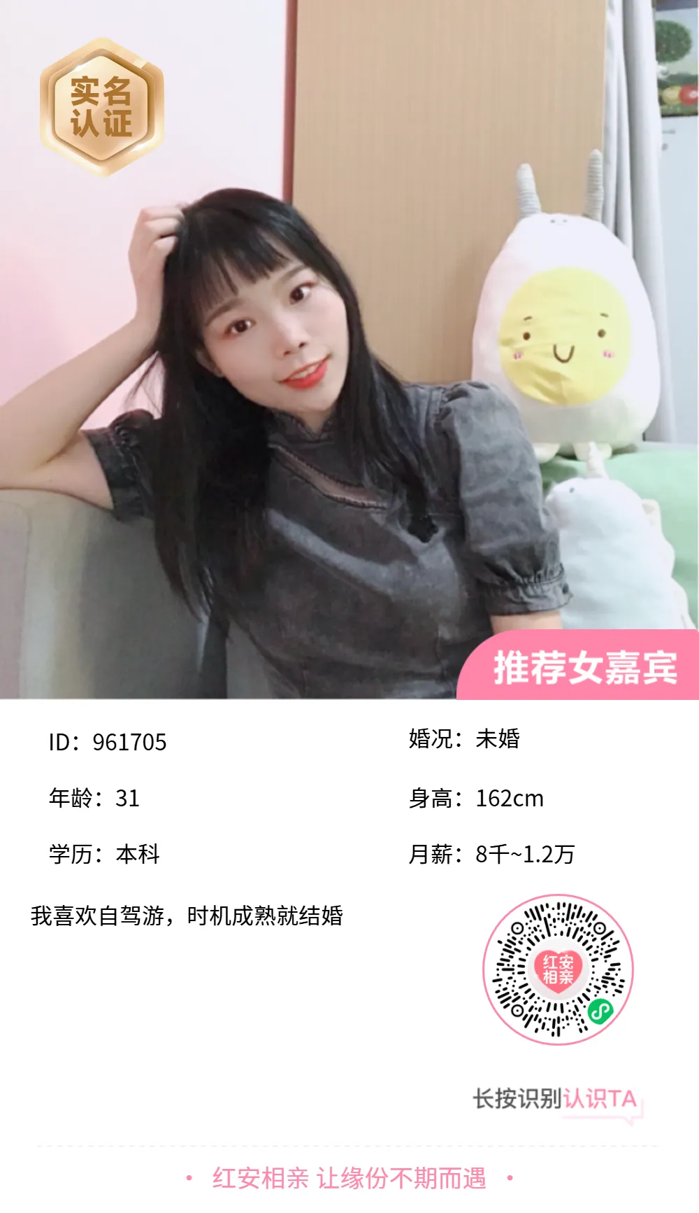tip:上墙嘉宾均为红安相亲小程序注册用户,如果你想认识ta可以添加红娘微信,回复嘉宾ID号,红娘一对一牵线~