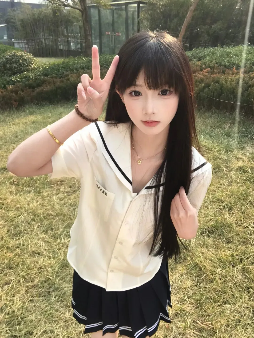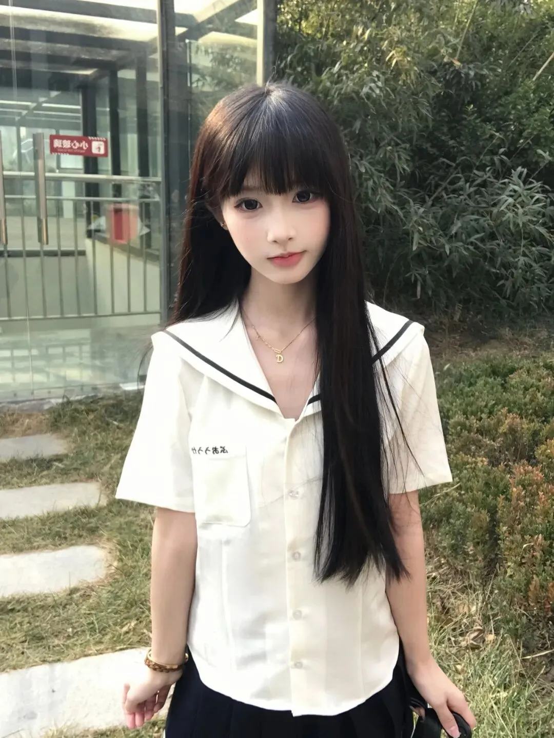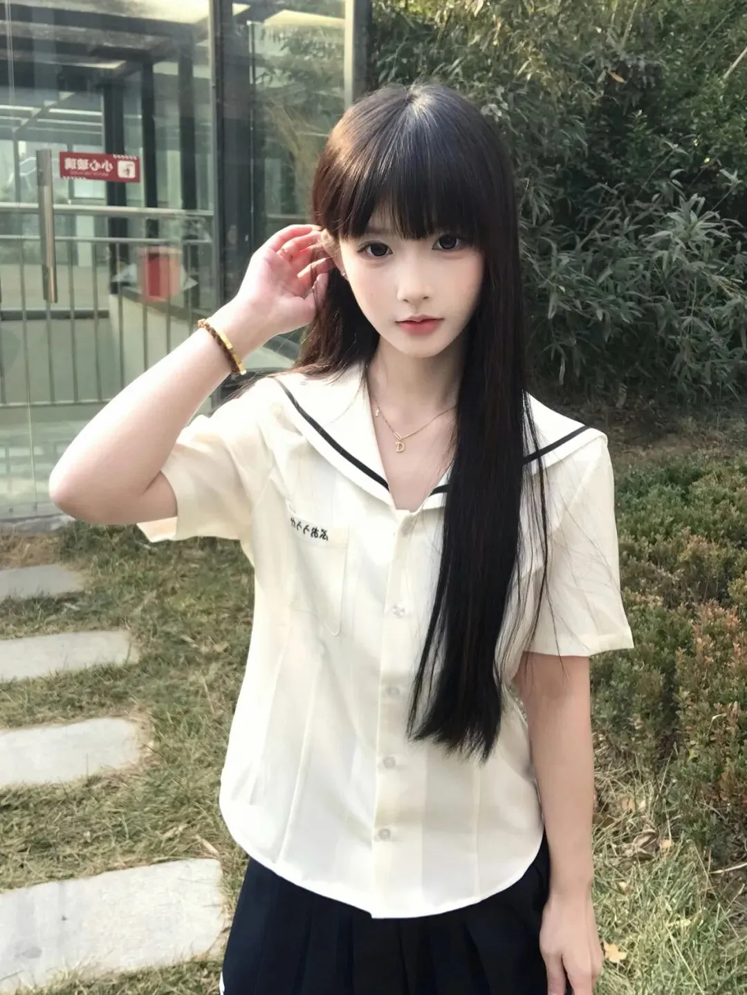 当前位置:首页>美女资讯>舞鸥羽阁羽白领章水手领衬衫模特图