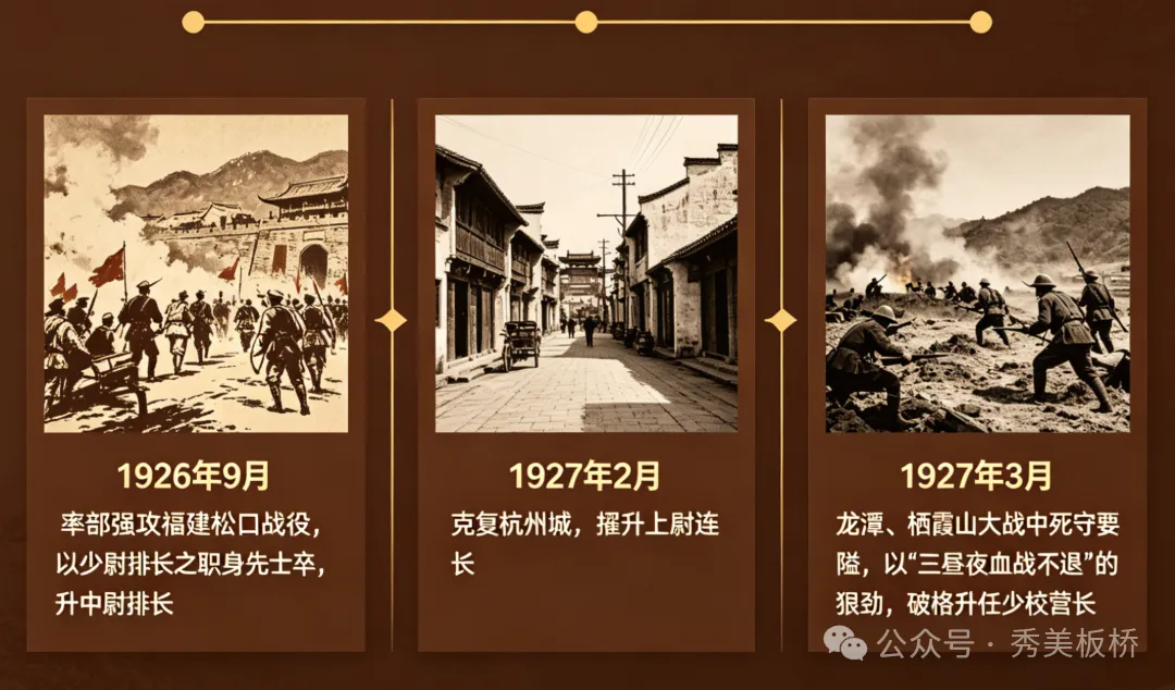 1926年9月:率部强攻福建松口战役,以少尉排长之职身先士卒,升中尉排长;