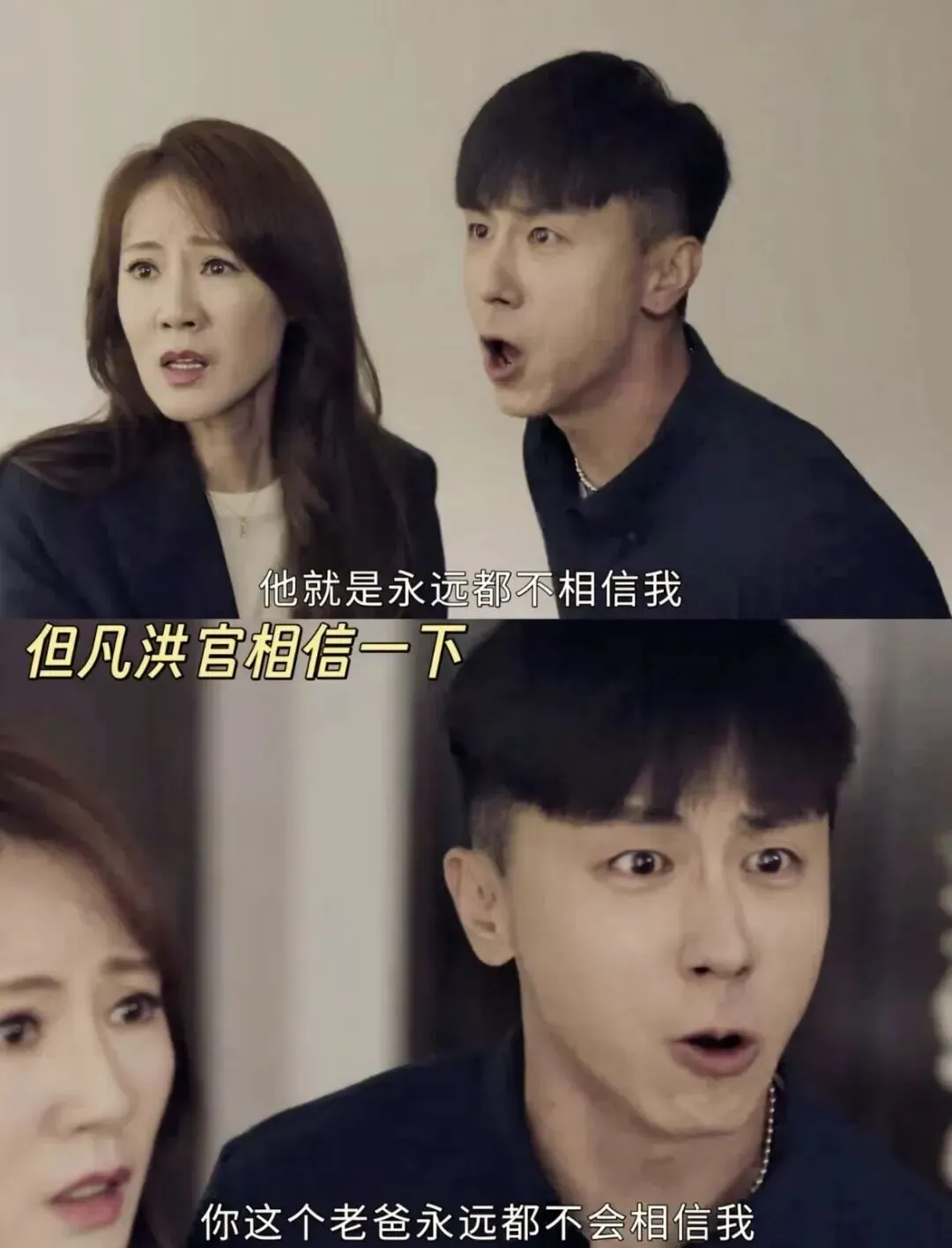 洪知行面对父亲洪官的质疑,情绪激动地表达自己长期被误解、不被信任的委屈:“你从来就不信任我,你觉得我丢你的脸。我明明没做错事,却被你当成罪犯一样审问。我不需要你用法官的眼光看我,我只需要你做我的爸爸,相信我。”