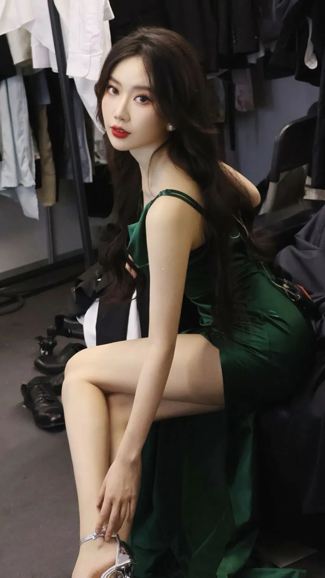 坐姿时双腿优雅交叠,站姿时腿型笔直修长,高跟与美腿的组合已成为她最具辨识度的个人标签。