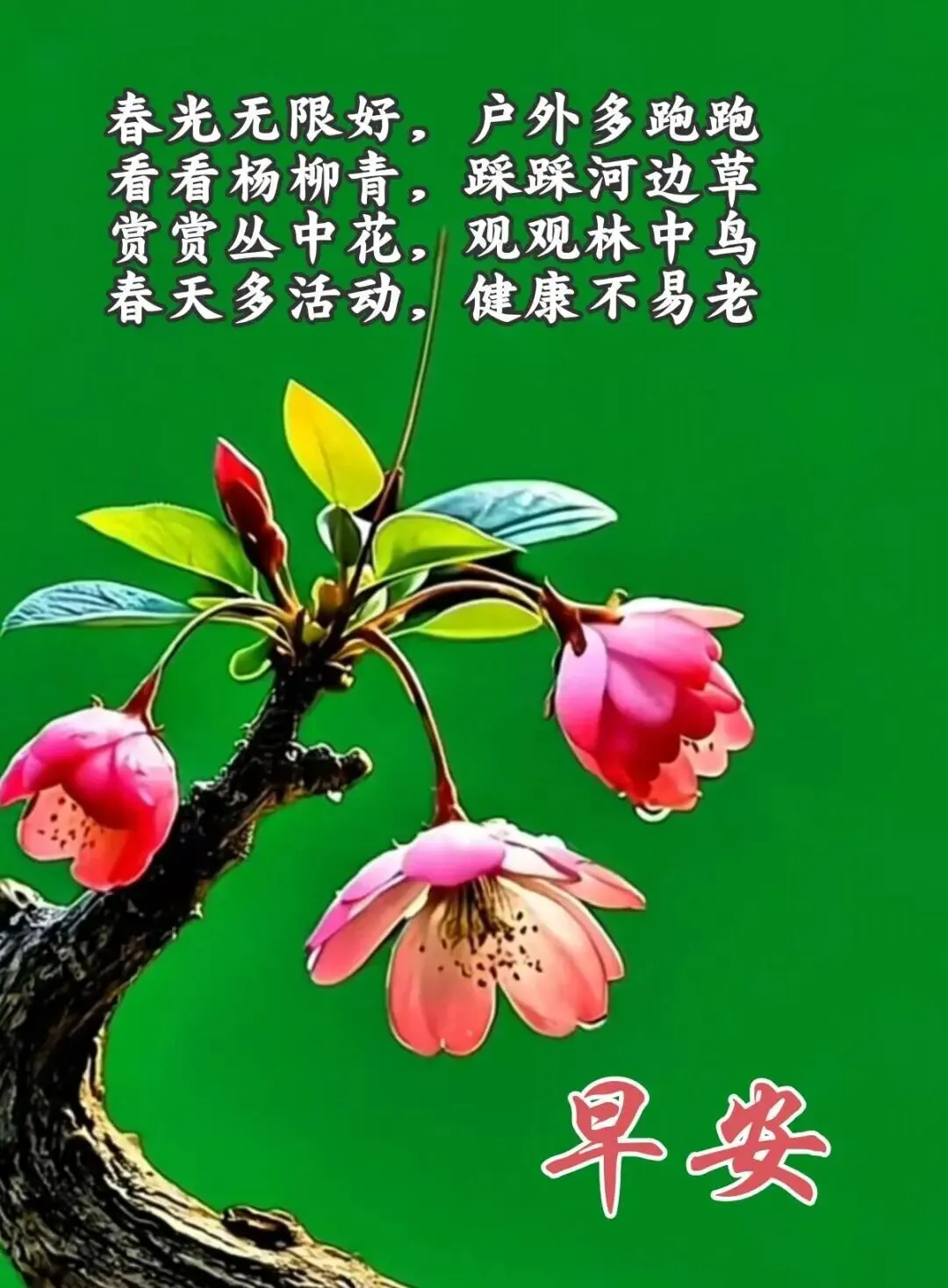 问候是春天的风,愉悦你的心情;祝福是春天的雨,滋润你的心灵;我的问候与祝福,带着春日的温馨送给你,愿新的一天平安喜乐。早上好!🌹☀️🍎☕️❤️🎉