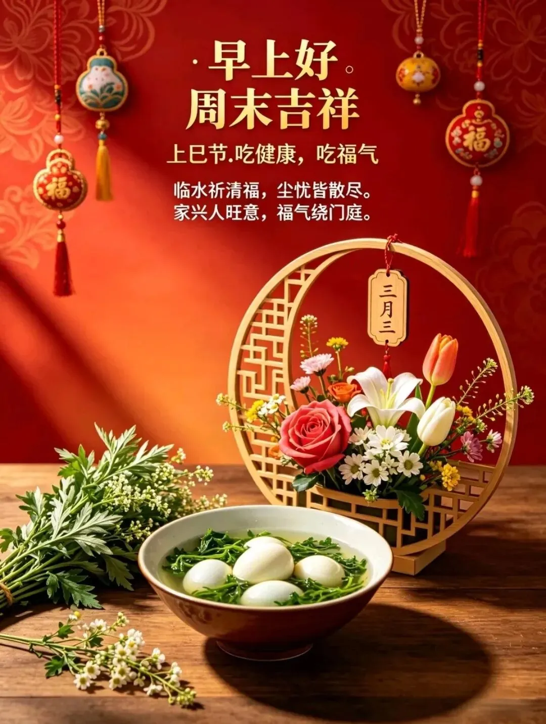 早安!今日农历三月三,食荠菜煮蛋🥚,春鲜入怀🥬,祛病纳福🍀。愿你三餐有味🍚,四季安康🏥。家宅和乐🏠,福气绵长🧧。日子如春芽舒展🌱,顺遂无忧😌。喜乐常在,岁岁皆安康。