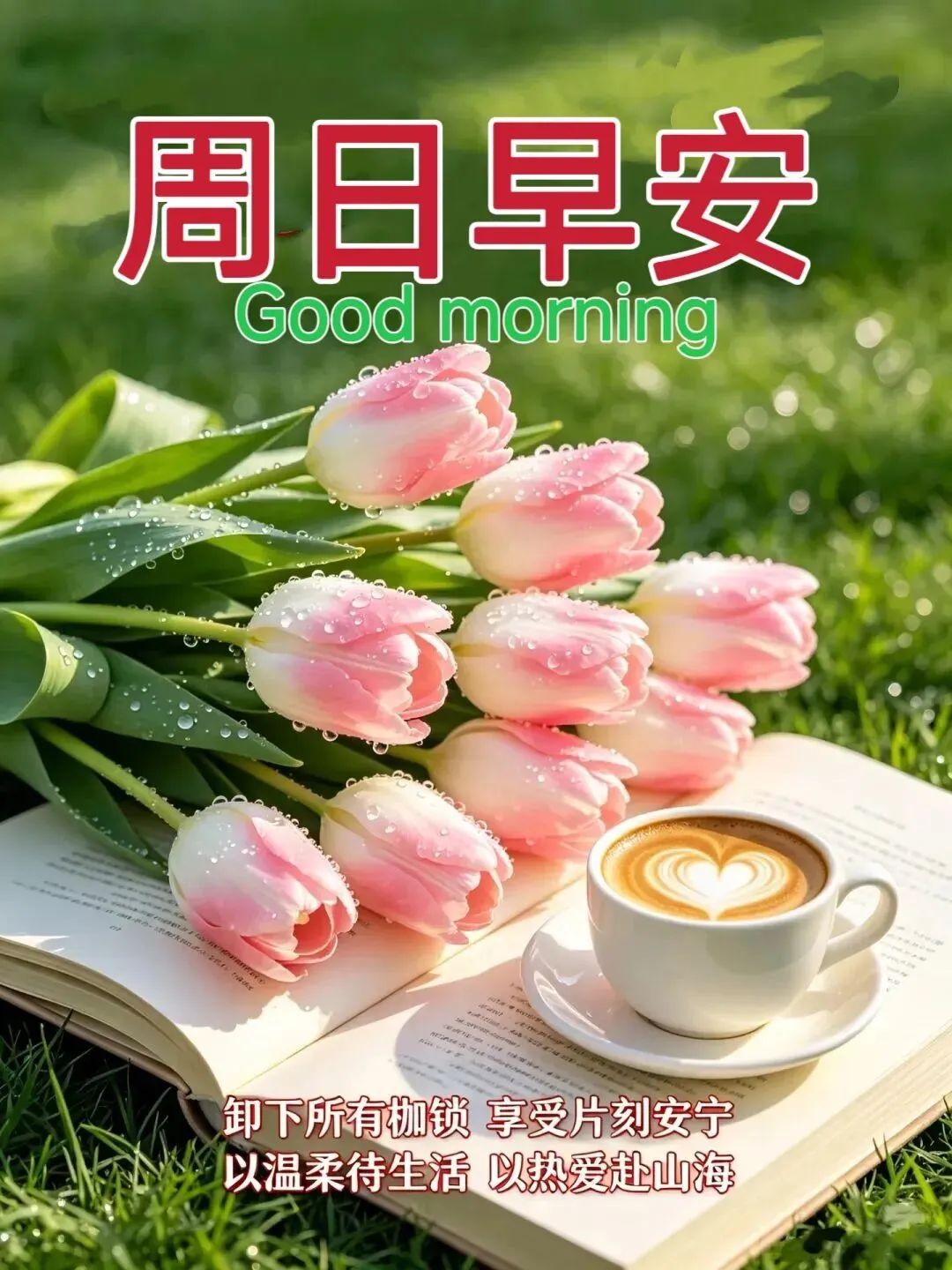 周日早安,美好的一天☀️,有鲜花相伴💐。晨风轻拂🍃,鸟语婉转🐦,花香绕肩🌸,暖意入怀❤️。心有明媚,岁月温柔。愿你眉眼带笑😊,自在安然,喜乐万事胜意。