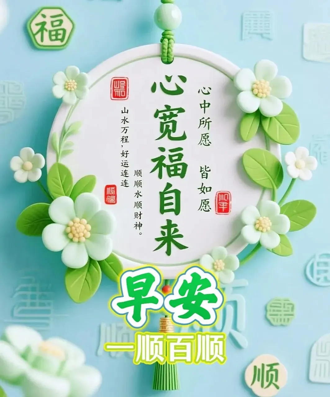 🌟周日来到晨风轻,二福随身伴你行💖;一福健康体硬朗💪,二福快乐常满盈😄;遇事不钻牛角尖,天天都有好心情。早上好!😌💖🎉
