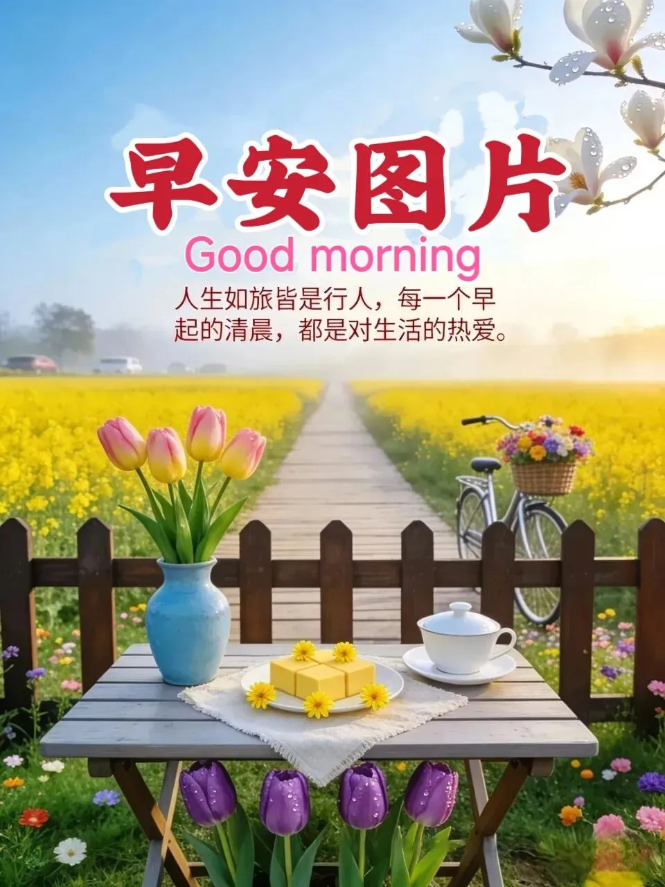 早上好!一束鲜花💐,为你带来淡淡芬芳🌿;一句问候💬,为你送上暖暖心意❤️;一声祝福🙏,为你捎去贴心牵挂🤗;一声欢歌🎤,为你带来格外舒畅😌。愿你平安顺遂🍀,健康吉祥🧧,开心每一天!🌹☕
