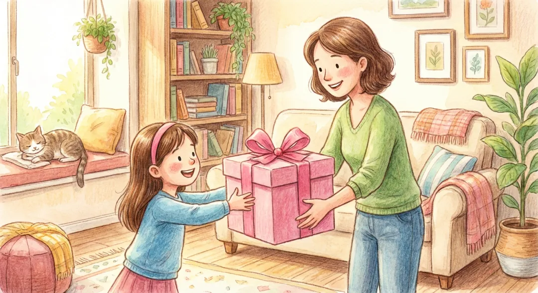 ❷ 在仪式上表达祝福,平时自然地问候:"今天肚子还会不舒服吗?需要爸爸给你准备布洛芬吗?"