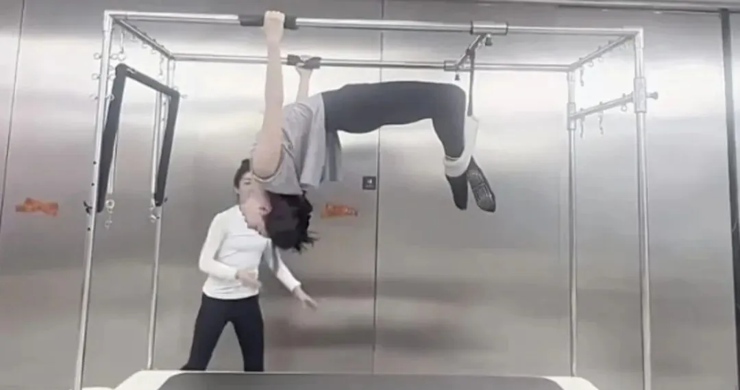 看过她2022年晒出的那段普拉提视频,穿着件普通的灰背心,满头汗,整个人“挂”在那个吊床上。眉头微微皱起,那是练到专注了的样子。