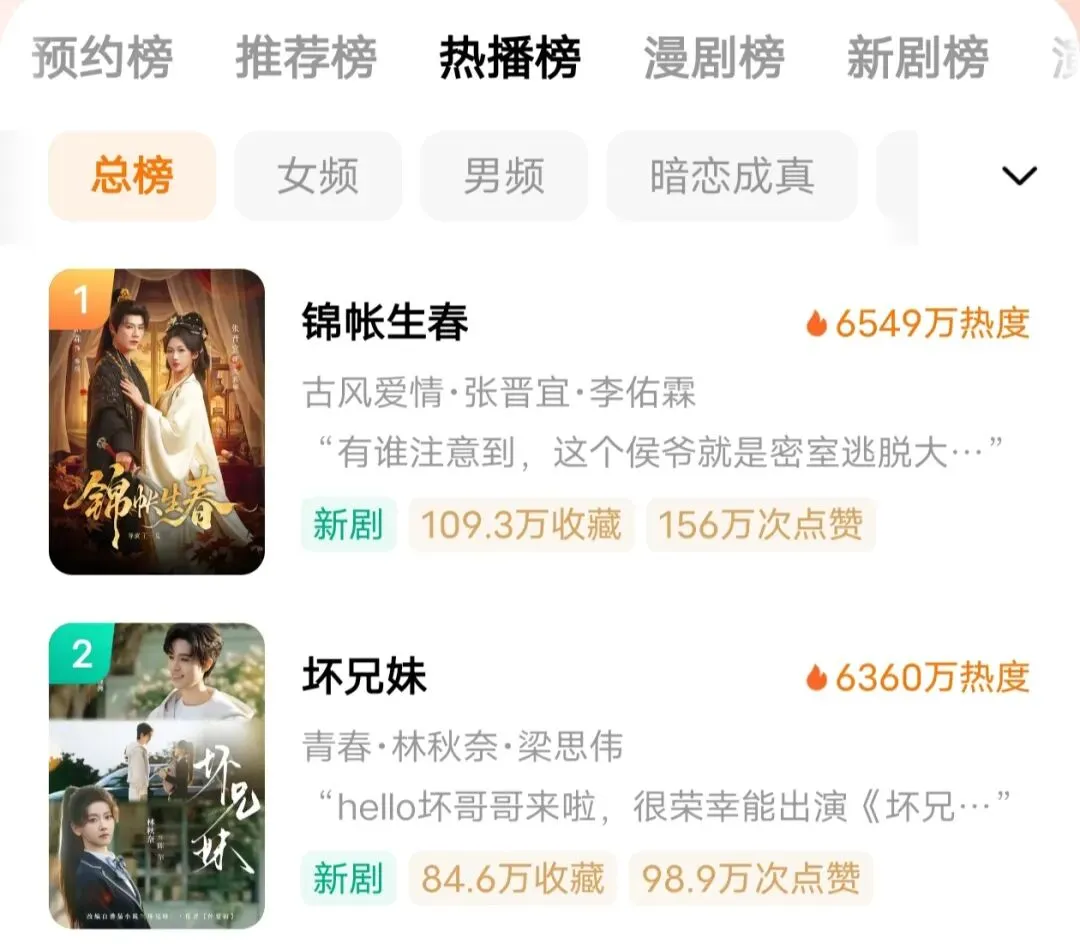 张晋宜今年真的是大爆发,连续几部剧口碑都不错,如今新剧《锦帐生春》还压下了梁思伟的《坏兄妹》,逆袭登顶,这波厉害了。