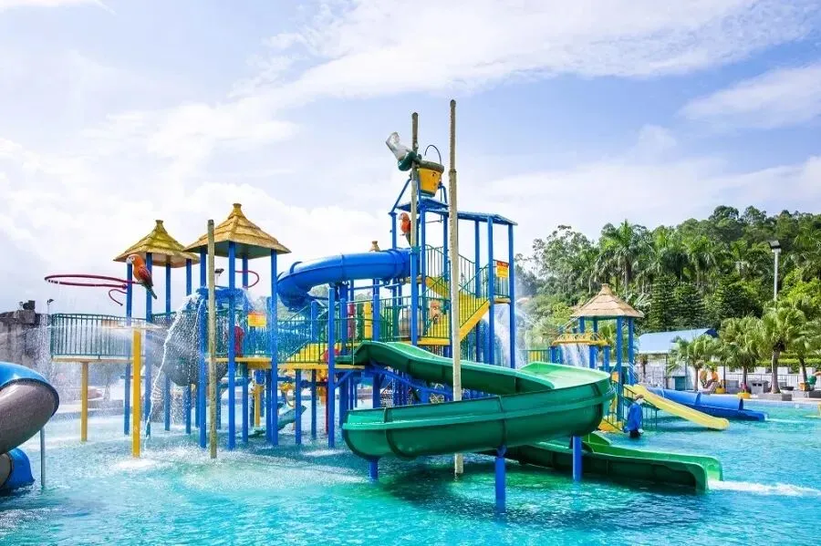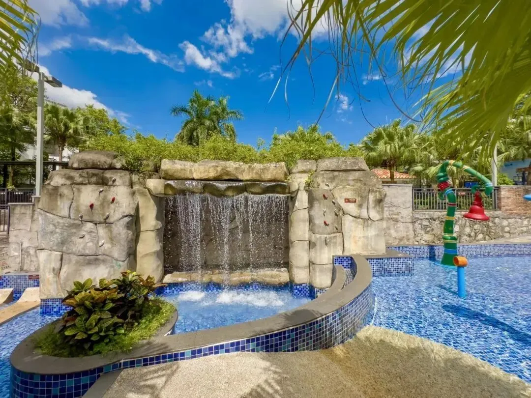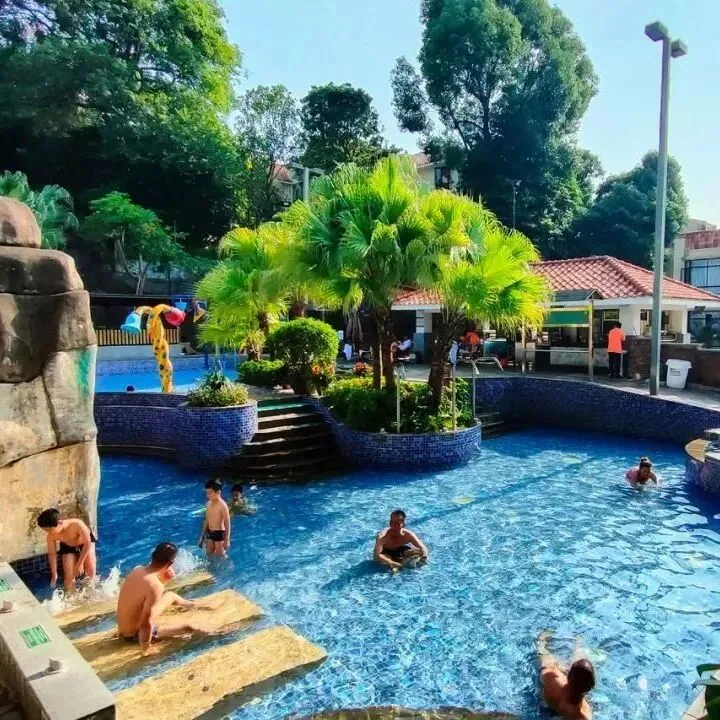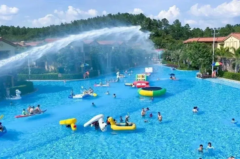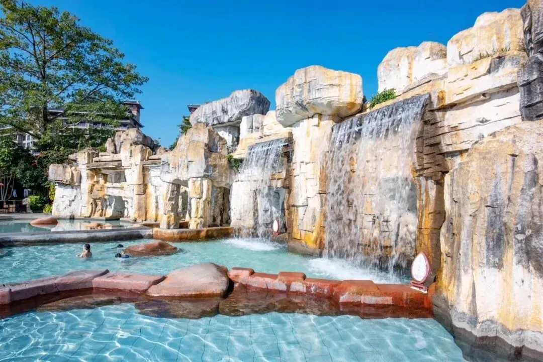温泉区占地面积2.3万平方米,共有50多个泡池,分为南药温泉区、多巴胺温泉区、露营温泉区、亲子戏水乐园、莲花温泉池、溶洞瀑布池、冲浪池等。现打造的“一园多区”各有特色,丰富游客多种泡泉体验。