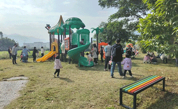 这里还有各种玩乐的户外设施,像组合滑梯、蹦床、秋千等,带上家里的小神兽,轻松享受甜蜜亲子时光~