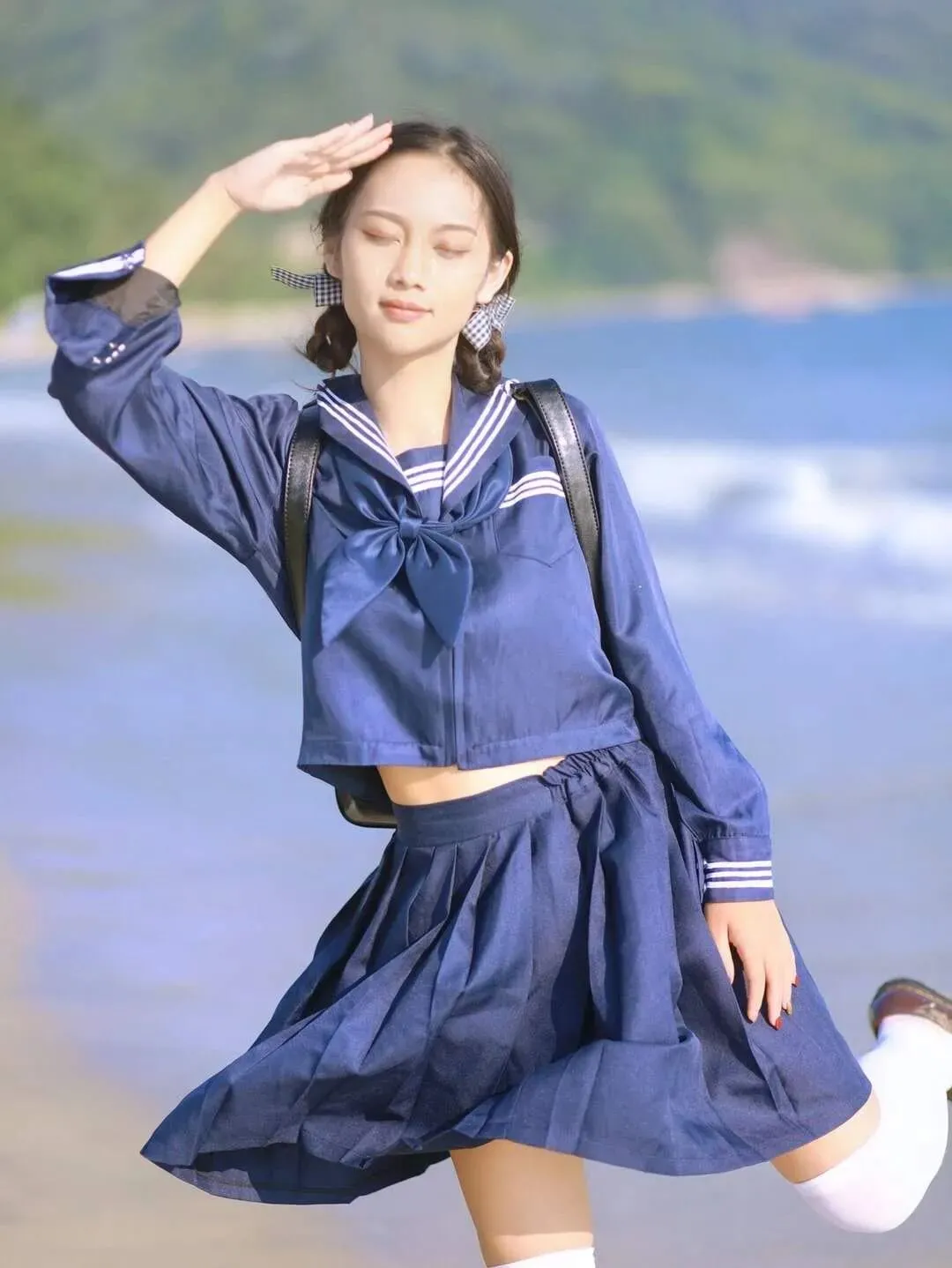 水手服上衣襟飘扬