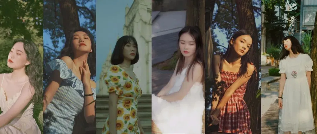 女孩子飞扬的裙角和满眼的绿