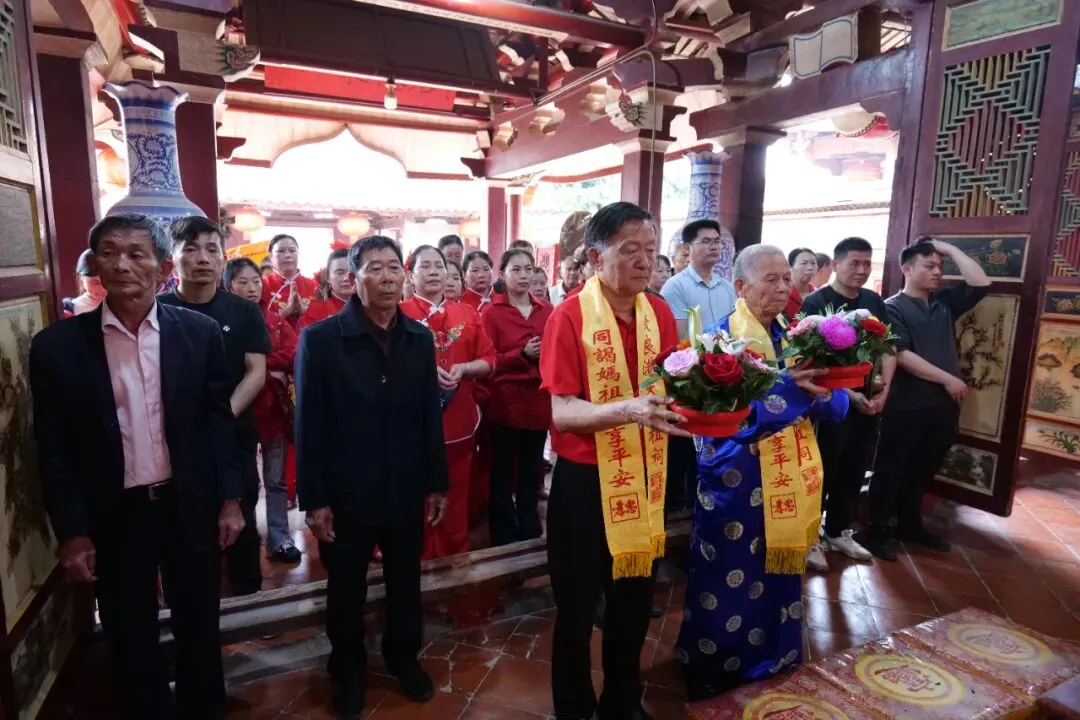 上午8时45分许,宁德福安市下白石妈祖庙进香团抵达贤良港天后祖祠。祖祠董事会董事长林自弟对进香团的到来表示热烈欢迎,并陪同进香团向妈祖行庄严的三献礼仪式。