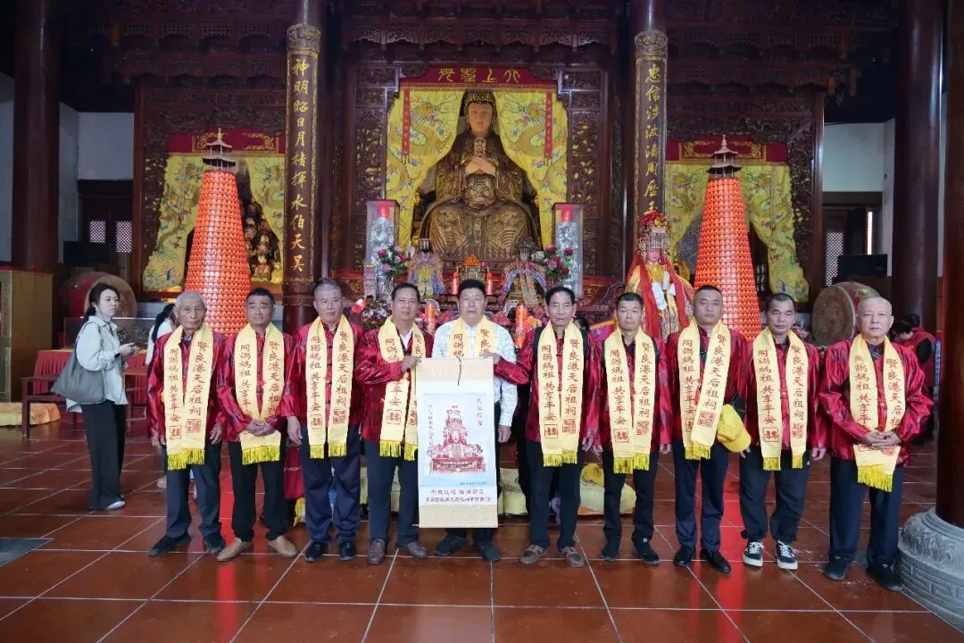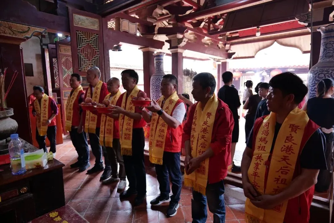 上午10时30分许,泉州泉港区峰尾镇奎壁村青龙堂进香团抵达贤良港天后祖祠。祖祠董事会董事长林自弟对进香团的到来表示热烈欢迎,并陪同进香团向妈祖行庄严的三献礼仪式。