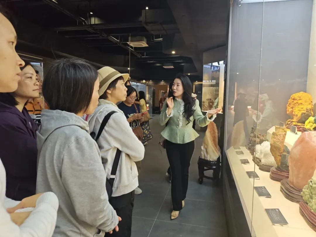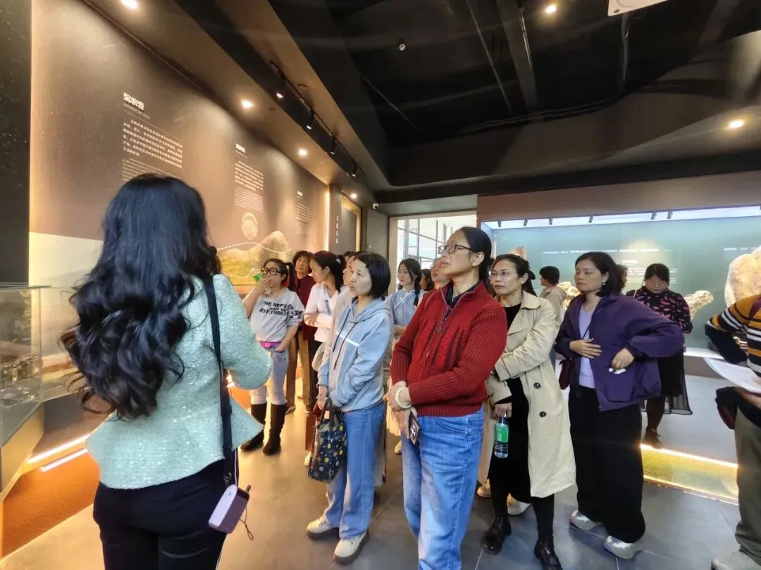 活动的序幕从一场“沉浸式科普导览”拉开。在专业讲解老师的带领下,南村中学的女教师们化身“探秘者”,沿着“矿物科普区—珠宝艺术区—世赛基地”的脉络,开启了一场跨越时空的知识漫游。