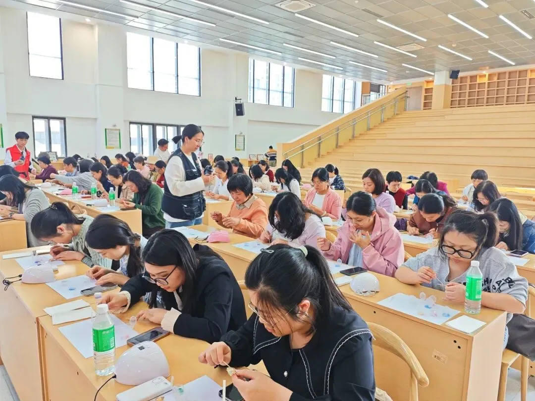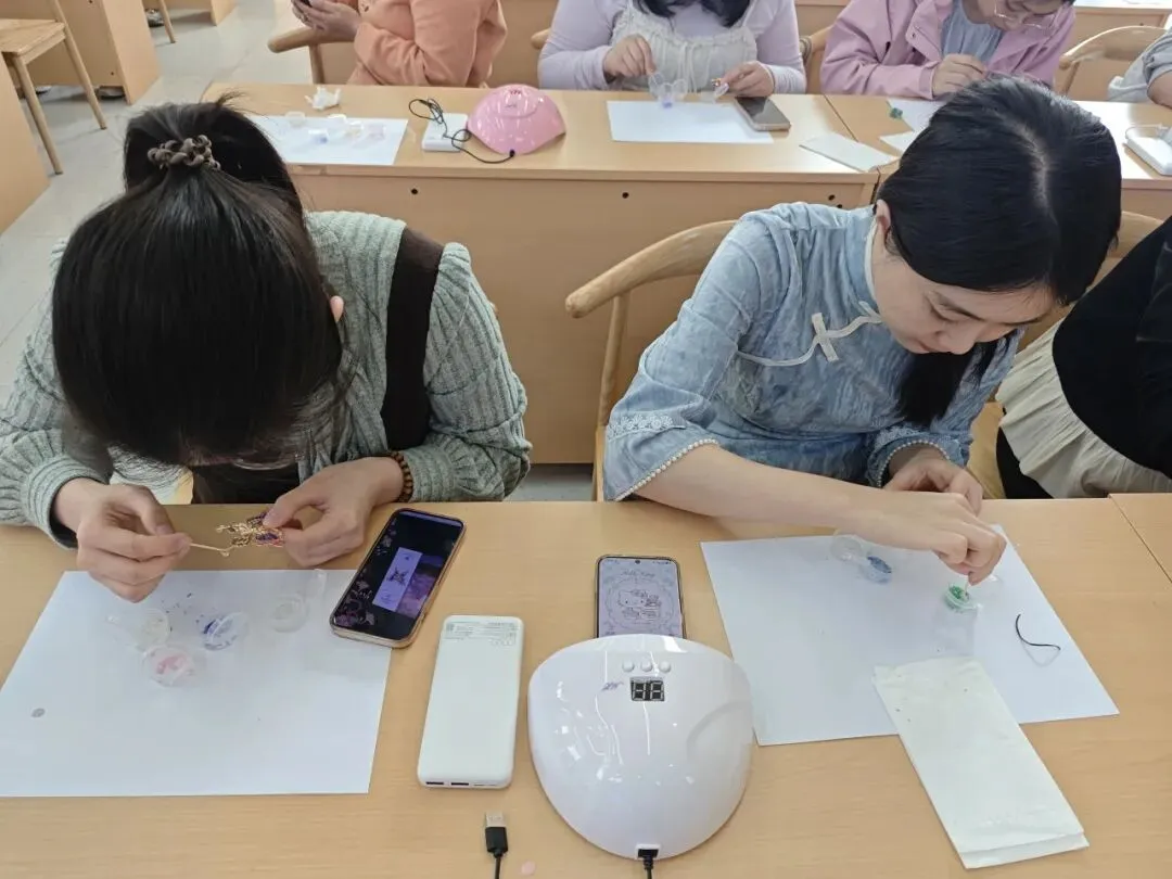 在专业老师的悉心指导下,平日里手握粉笔、耕耘讲台的老师们,此刻化身为心灵手巧的艺术家。大家小心翼翼地拿起一片片薄如蝉翼、闪烁着温润光泽的贝壳薄片,根据各自的创意与喜好,构思、镶嵌着自己的“女神节礼物”。这不仅是一次手工体验,更是一次与传统文化精髓的亲密对话。