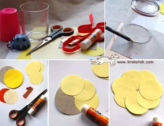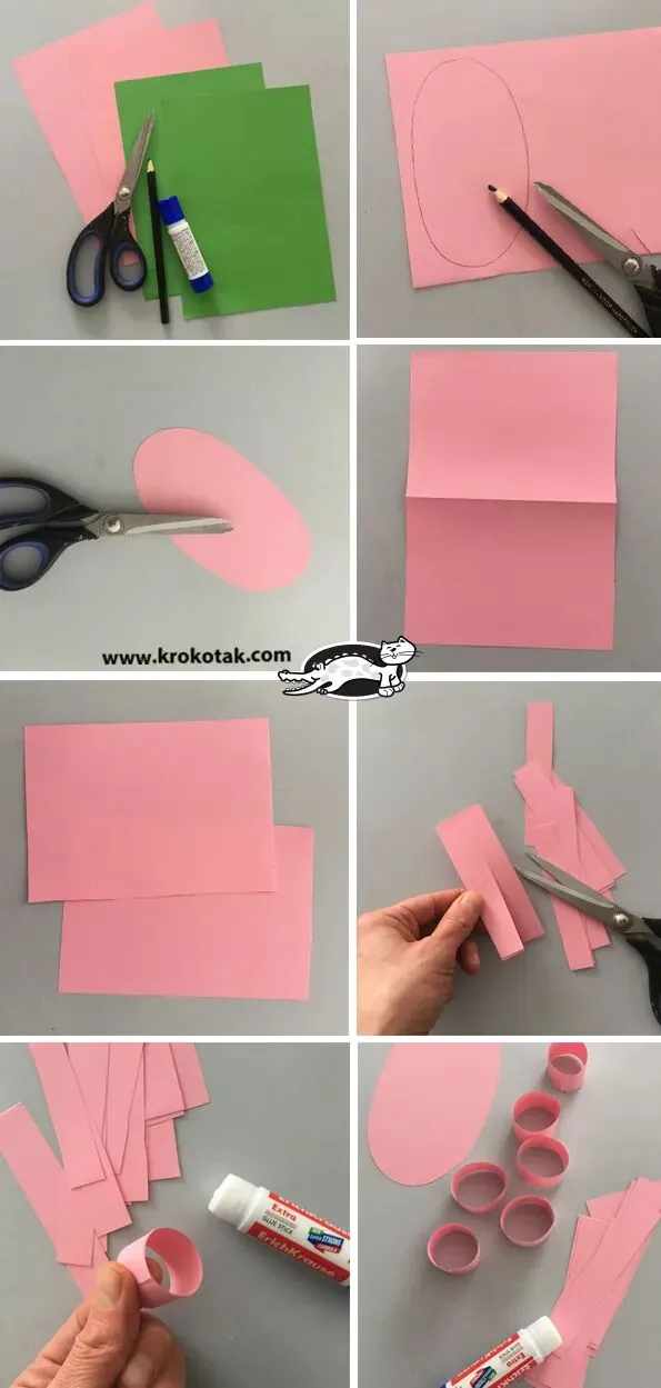 准备材料:彩色卡纸、胶水、剪刀、圆柱形笔杆等