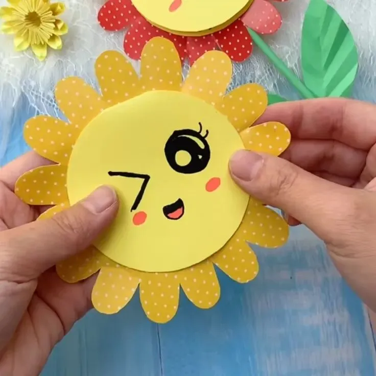 妈妈下班回到家,工作了一天很辛苦呢,送上一朵灿烂的太阳花,画上宝贝的笑脸,相信妈妈能够一扫疲倦,心里暖暖的,感受宝贝的爱意和感恩。