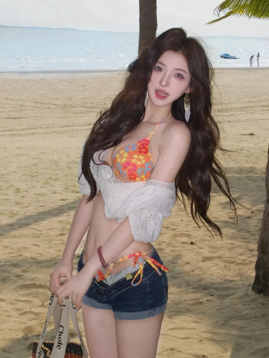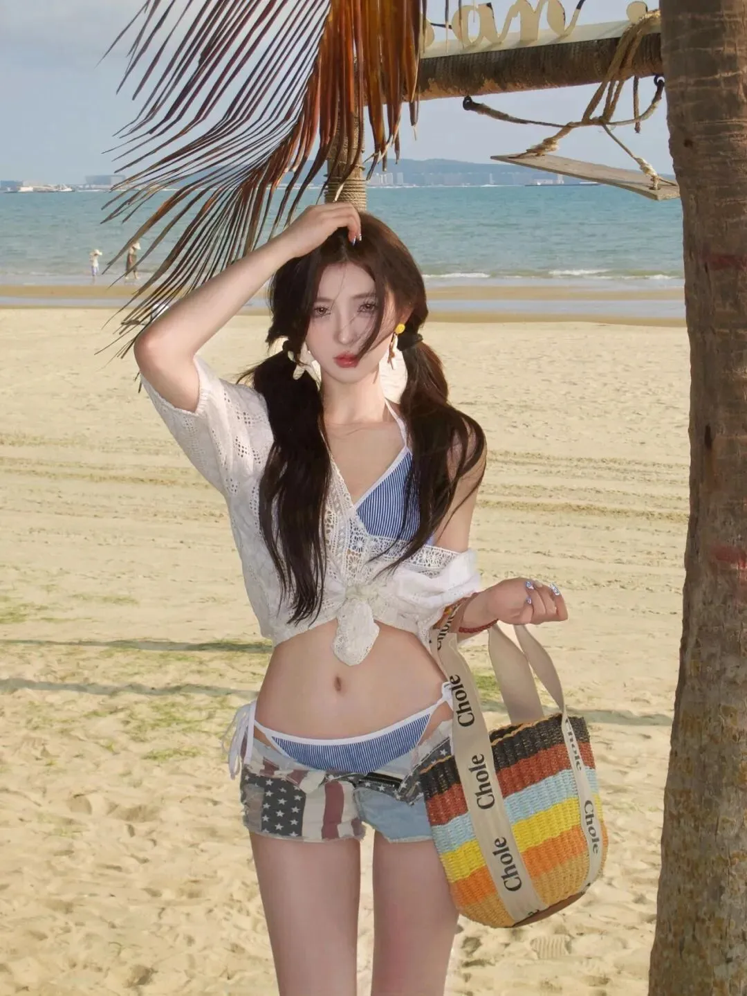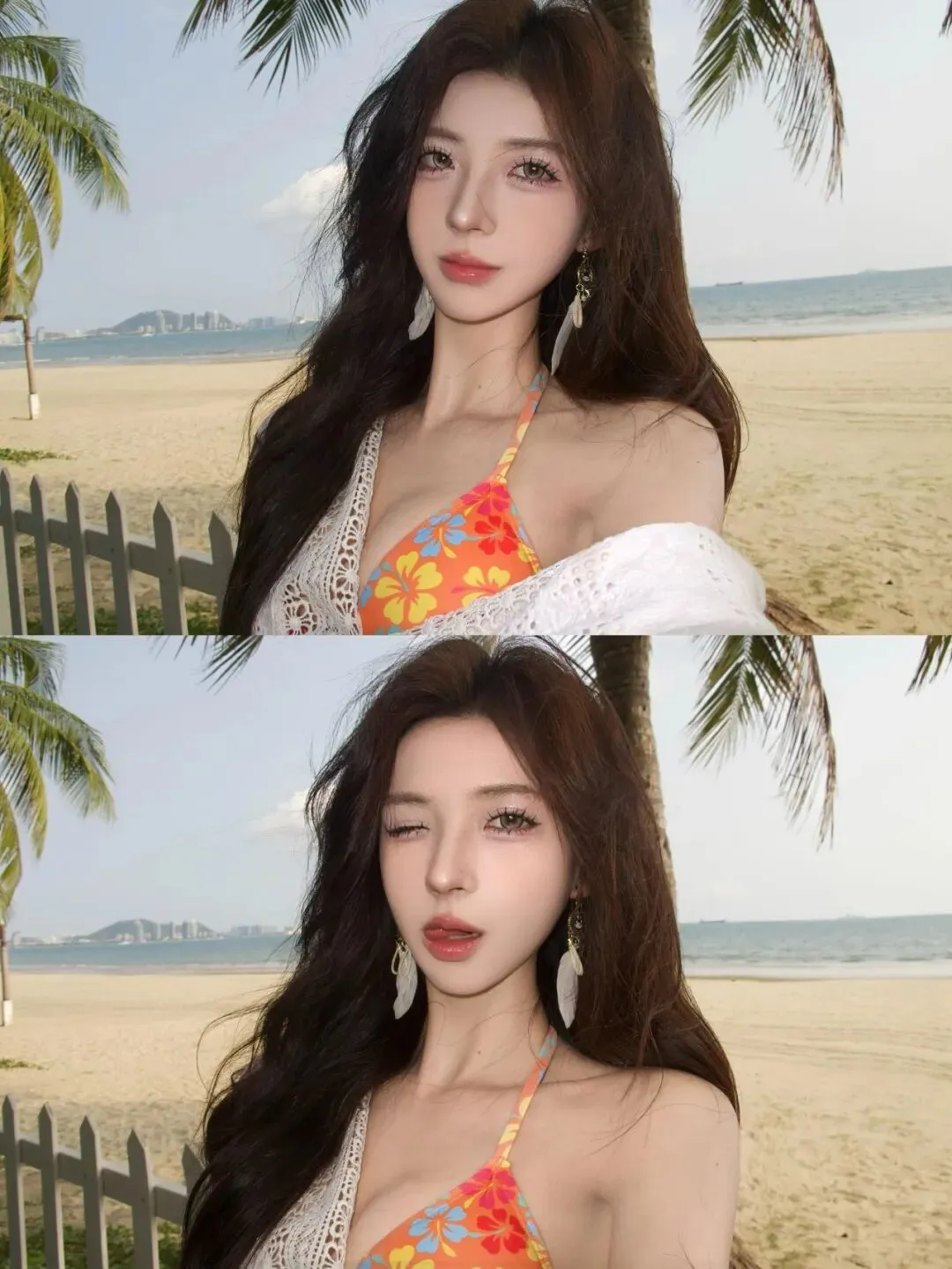 很多人去海边拍照,最怕的不是风大太阳晒,而是站在椰子树旁边突然不知道手放在哪里了,表情一用力就僵硬起来,身子动一下又觉得尴尬。这组是海边沙滩配泳衣加白色罩衫,在自然中自带清透度假的感觉,并且拍摄的时候不容易出错。