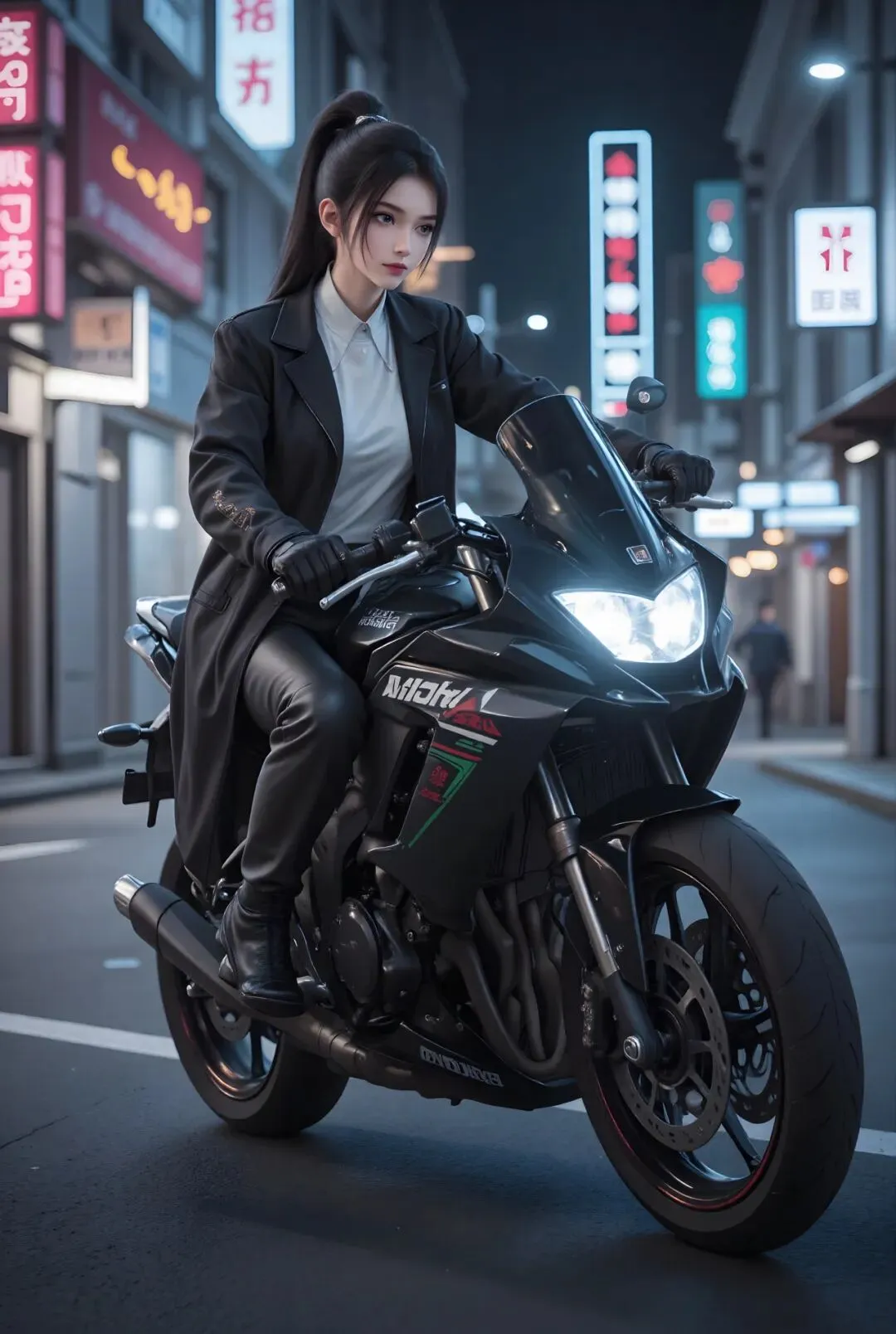 夜色街头,机车相伴,霓虹光影勾勒出她利落的轮廓,玄衣加身,飒爽十足。以夜色为袍,以锋芒为刃,穿梭在城市街巷,自带生人勿近的御姐气场,每一步都走得肆意洒脱,将现代酷飒与江湖侠气完美融合,一眼便让人沦陷。