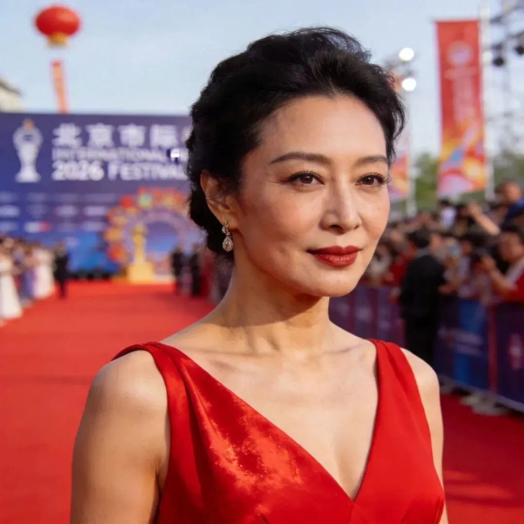 最近一次公开亮相,是在北京某品牌活动上。她穿着一袭鎏金深V礼裙,梳着利落的高马尾。