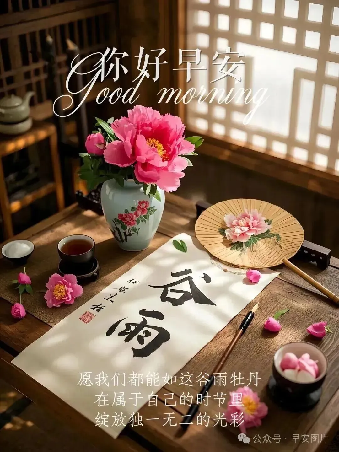 谷雨的雨,不紧不慢,不急不躁,像极了那些把日子过得从容的人。知轻重,懂分寸,心里有数,脚下有根。愿您今日安然自在,健康长久,诸事皆顺,早安如意。🎋🌹