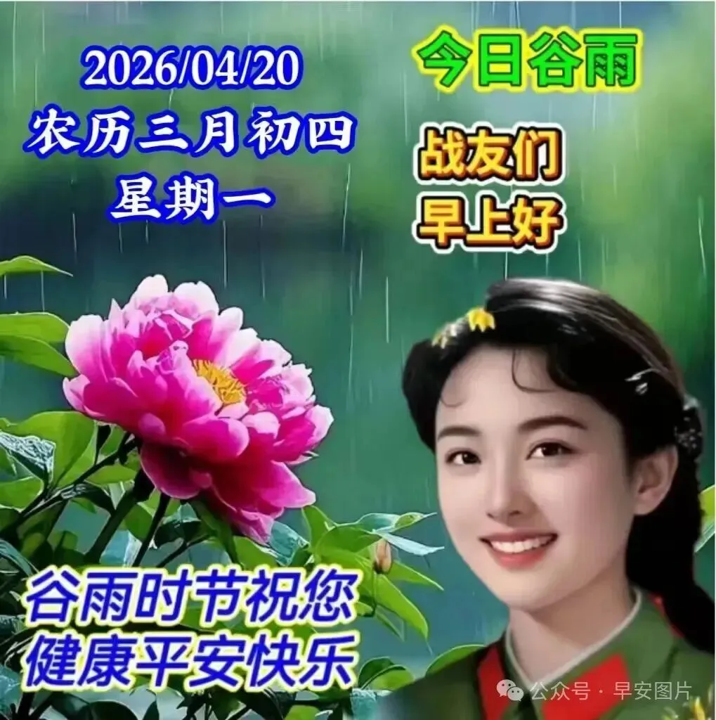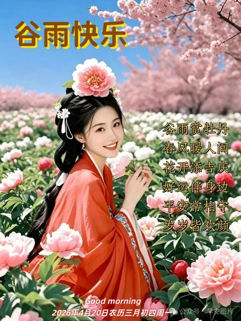 当前位置:首页>美女资讯>2026年4月20日谷雨早安图片,周一愉快!