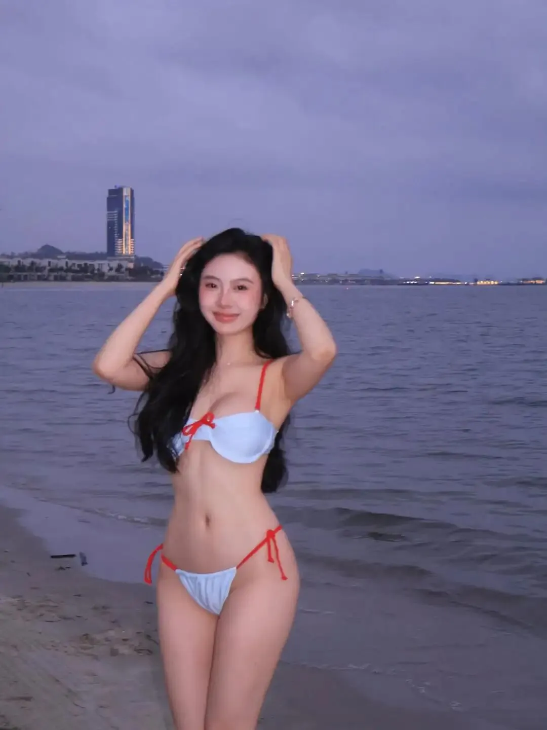 泳装美女,黑夜中白色泳衣的迷人