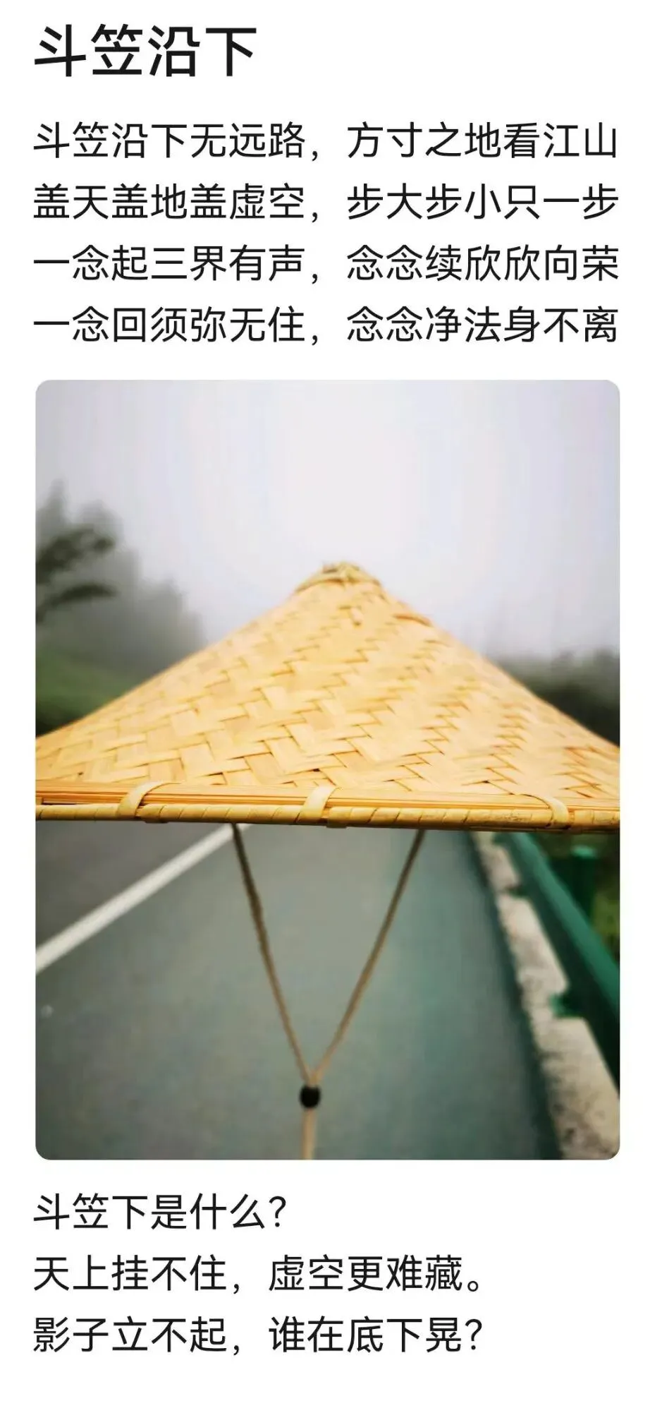 跟在师父后面,前面十几公里还是能跟上的。早饭后开始慢慢不行了,脚开始长泡,腿也越来越重,酸疼感出来了,于是开始外求,总盼着师父能休息一下或慢一点,好让我赶上。哪知师父像一台永动机,一直匀速前行,拍照、写诗都在行进中,几乎没有卡顿,三十几公里不休息。师父说这是站桩打的底子,真是让人不得不服。