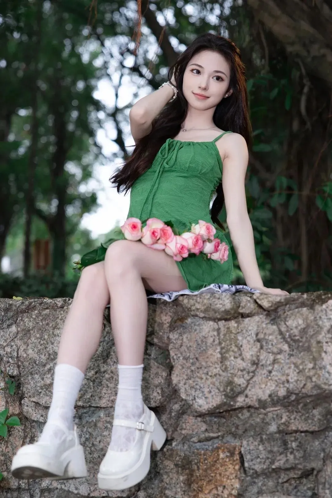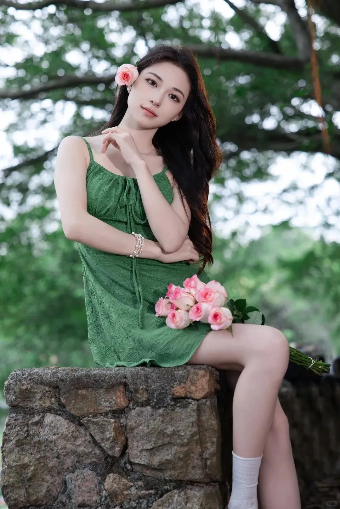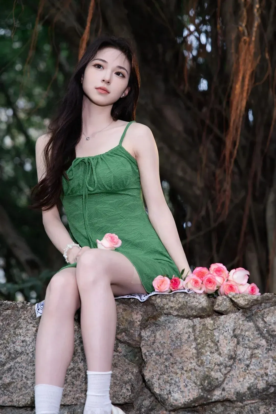 当前位置:首页>美女资讯>森屿花信|绿裙粉玫瑰森系少女写真