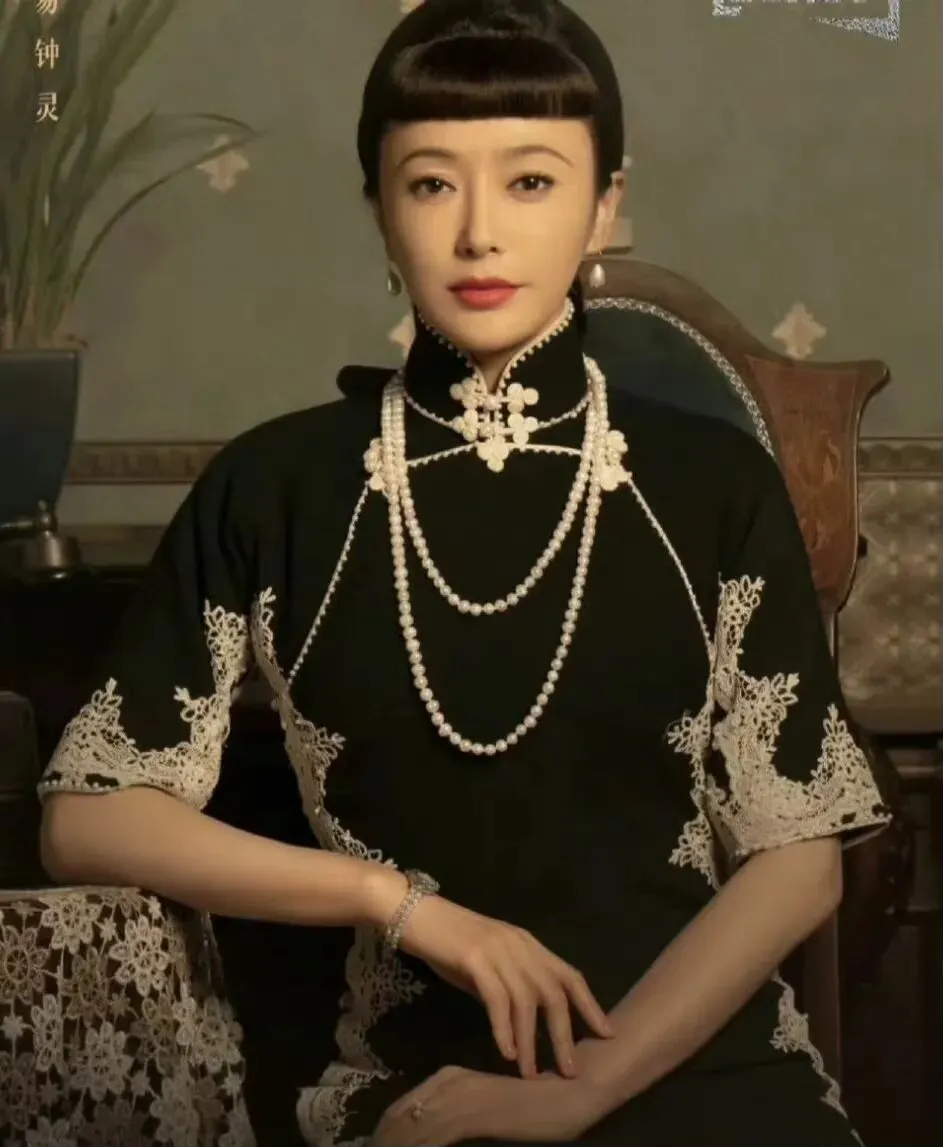 剧中她饰演的易钟灵,身着各式古典旗袍,刺绣精致,剪裁得体,搭配温婉的发型与妆容,气质端庄大气,将名门闺秀的知书达理、温柔隐忍展现得淋漓尽致。