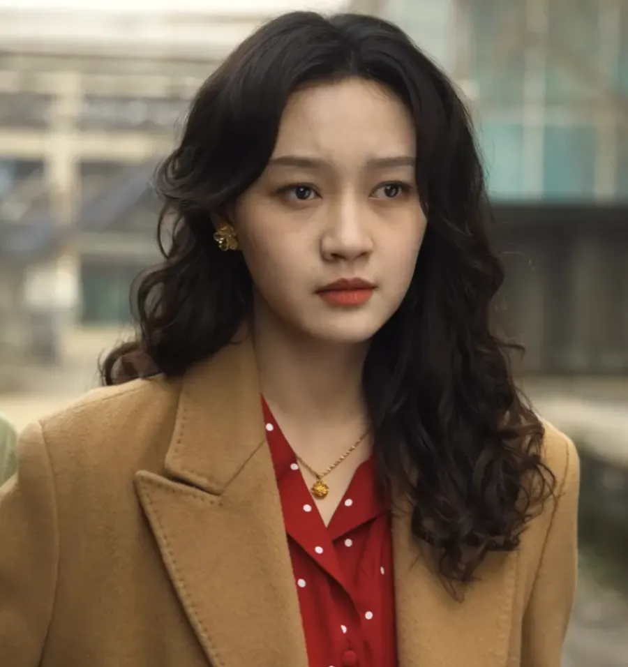 可她身上这套,不知道是小了一码还是剪裁不合理,紧紧地箍在身上,一点赘肉都藏不住,裙身皱巴巴的,全是挤压出来的褶子,看着就很局促。
