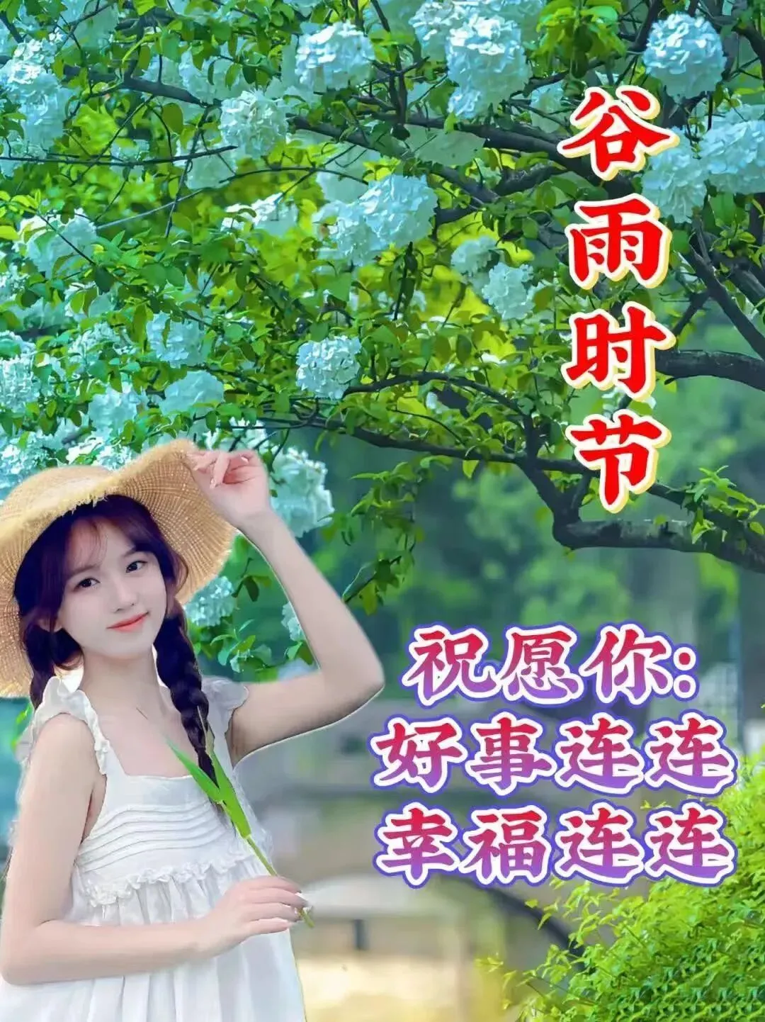 好雨生百谷,好友送祝福。调好光景,雨顺好前途。催开幸福花,催熟丰收谷。好事一桩桩,好运一路路。谷雨节气快乐!