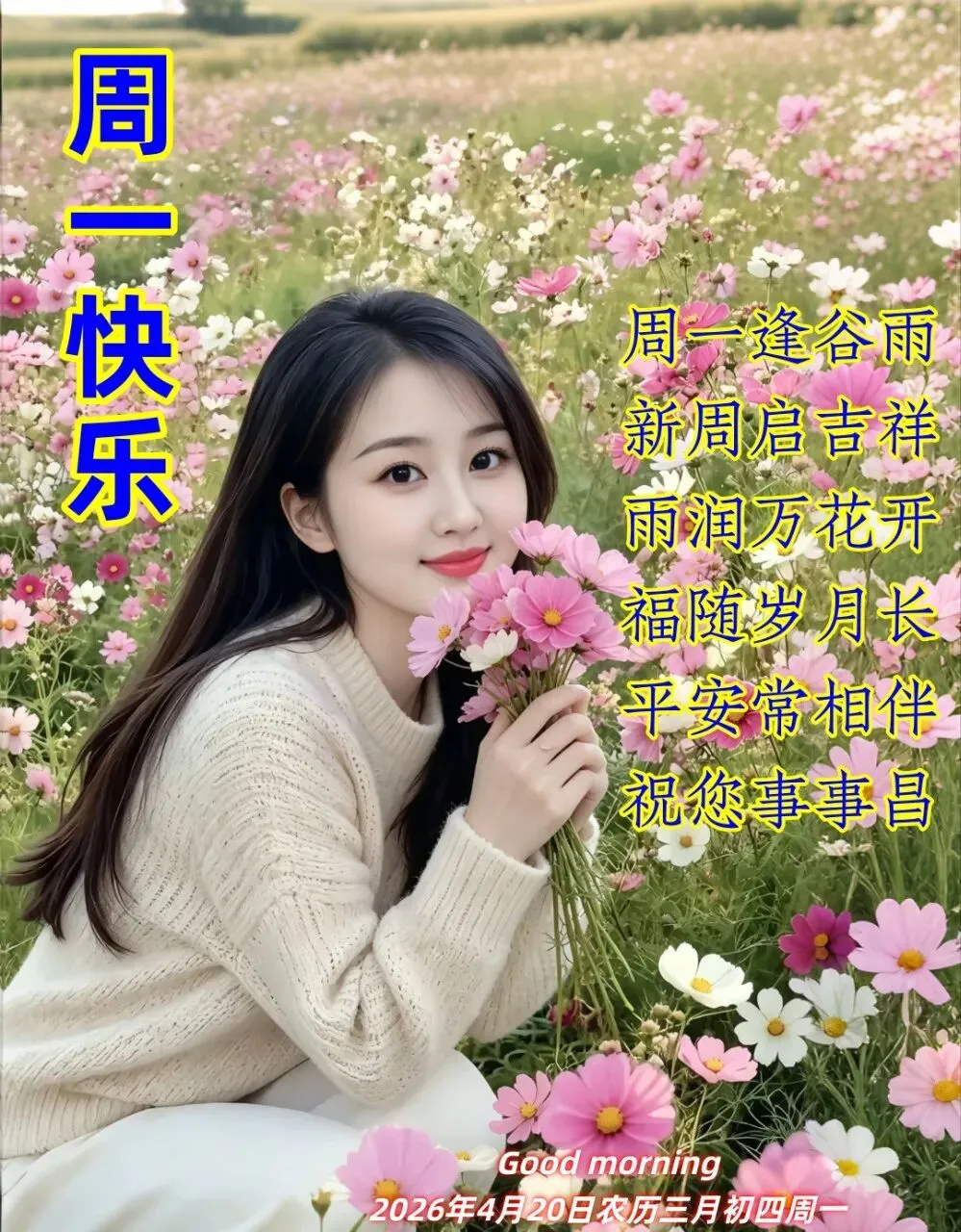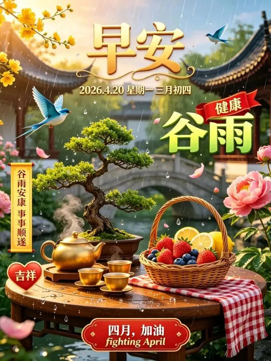 当前位置:首页>美女资讯>2026年4月20日谷雨早安图片,好雨生百谷,好友送祝福.催开幸福花,催熟丰收谷.谷雨节气快乐!