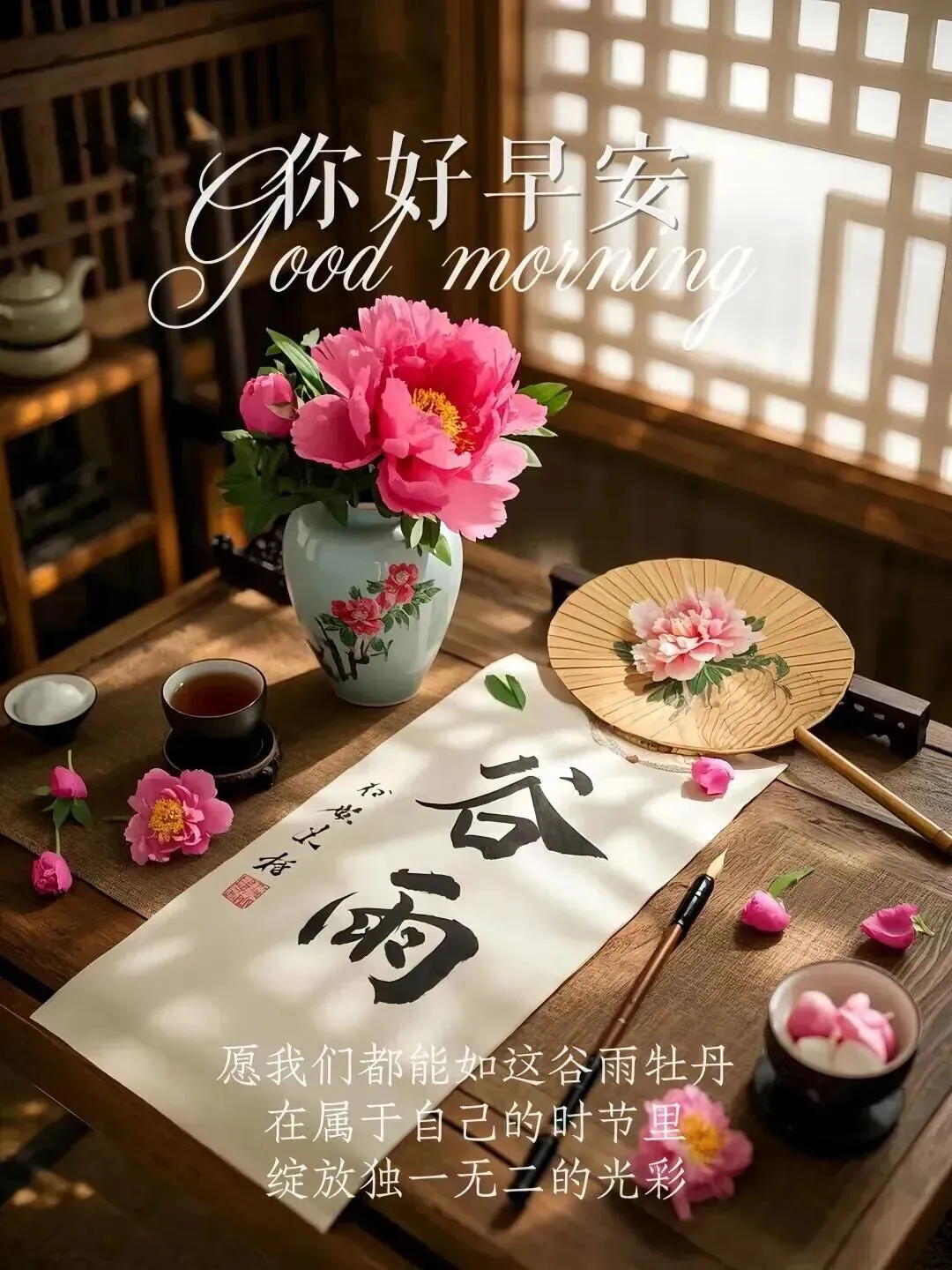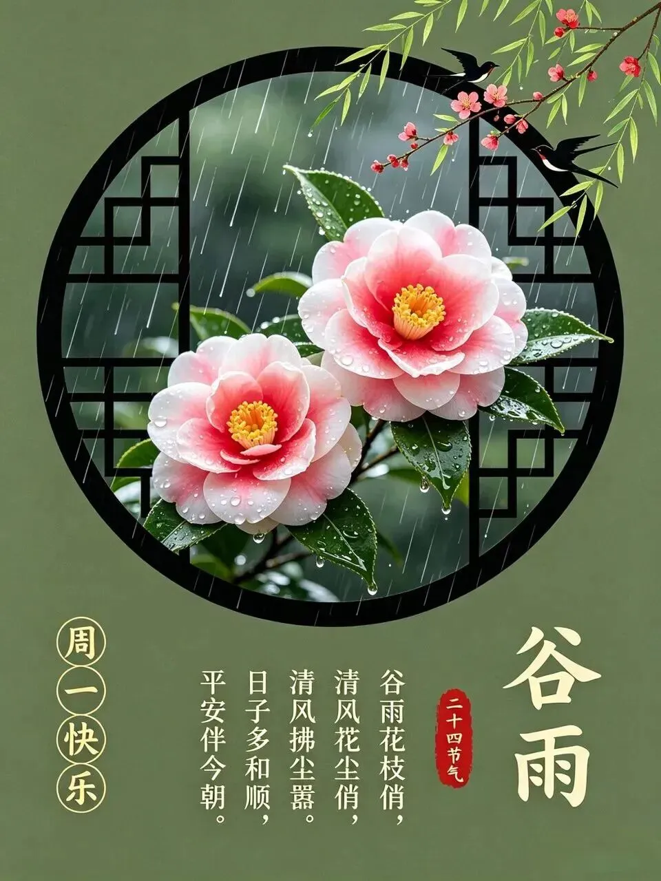 谷雨的雨,不紧不慢,不急不躁,像极了那些把日子过得从容的人。知轻重,懂分寸,心里有数,脚下有根。愿您今日安然自在,健康长久,诸事皆顺,早安如意。🎋🌹