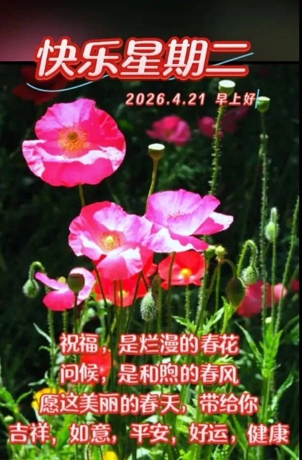 当前位置:首页>美女资讯>2026年4月21日周二早上好图片 早上好温馨问候祝福语 早安精美图片