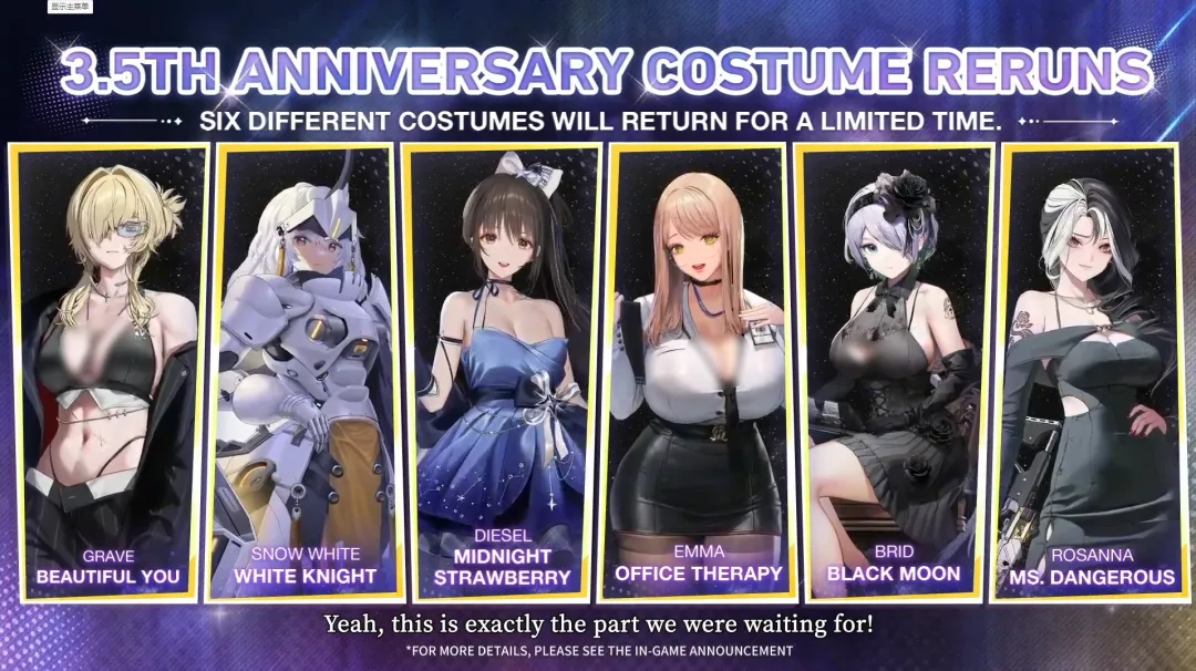 *3.5周年特别福利!每天可免费进行1SSR妮姬【阿妮斯:超级巨星】的特别招募。