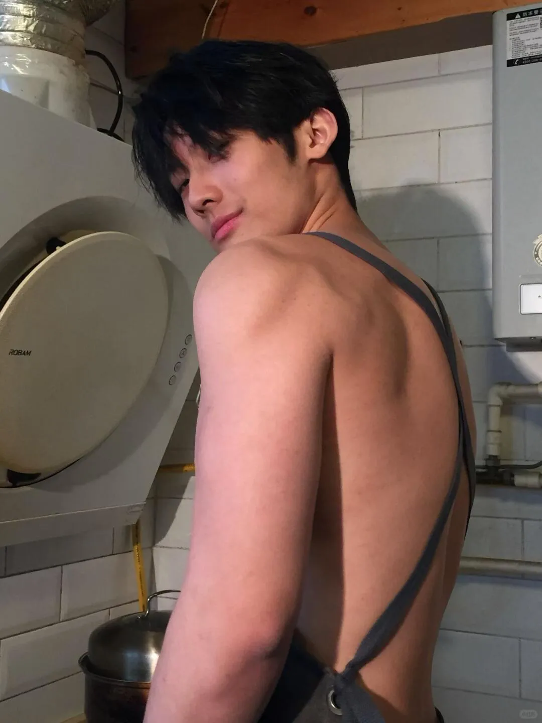 做模特的好处是有很多的衣服和很多的照片。这位小哥哥在小红书上发的不少照片居然是在厨房里拍摄的,这也是一个赛道吗?